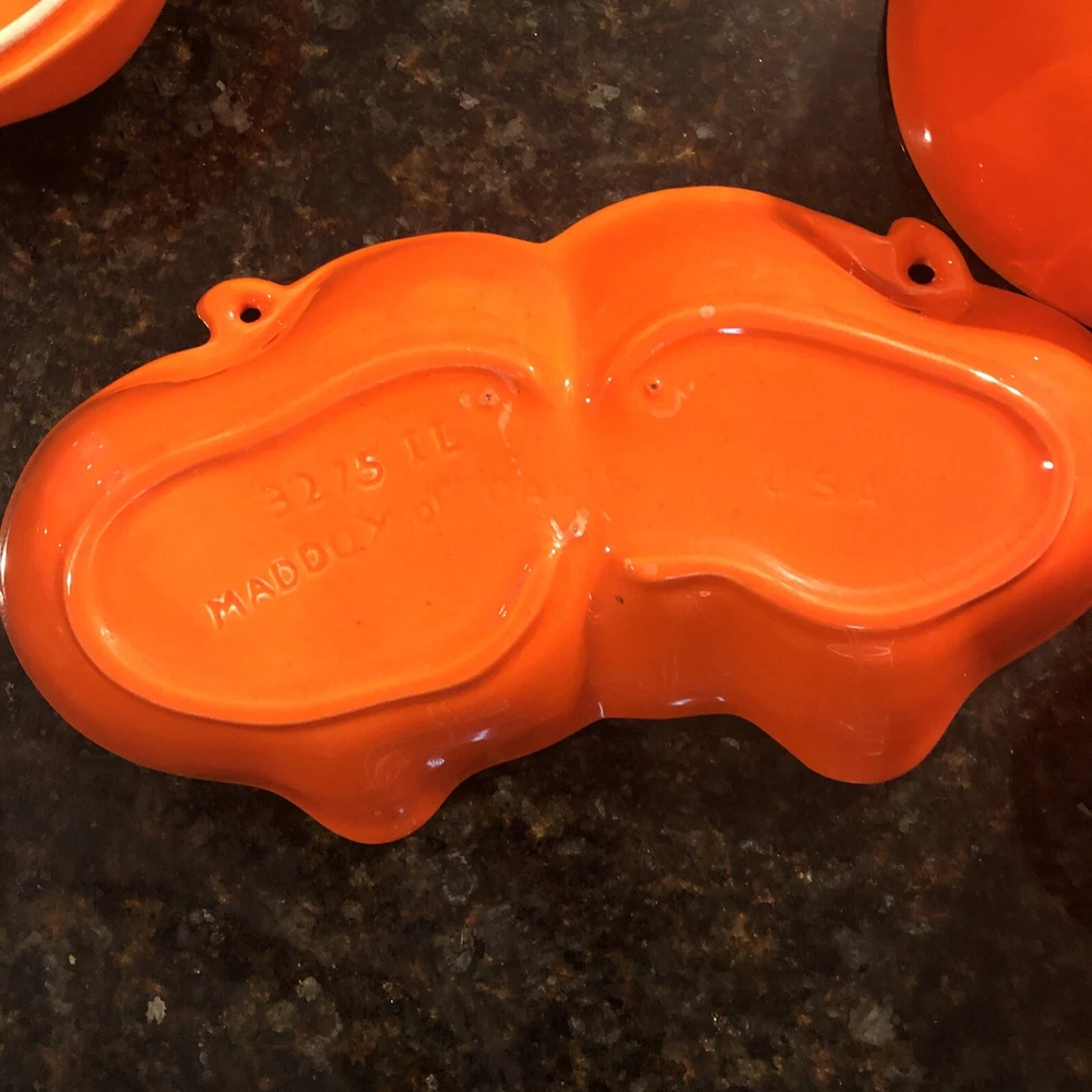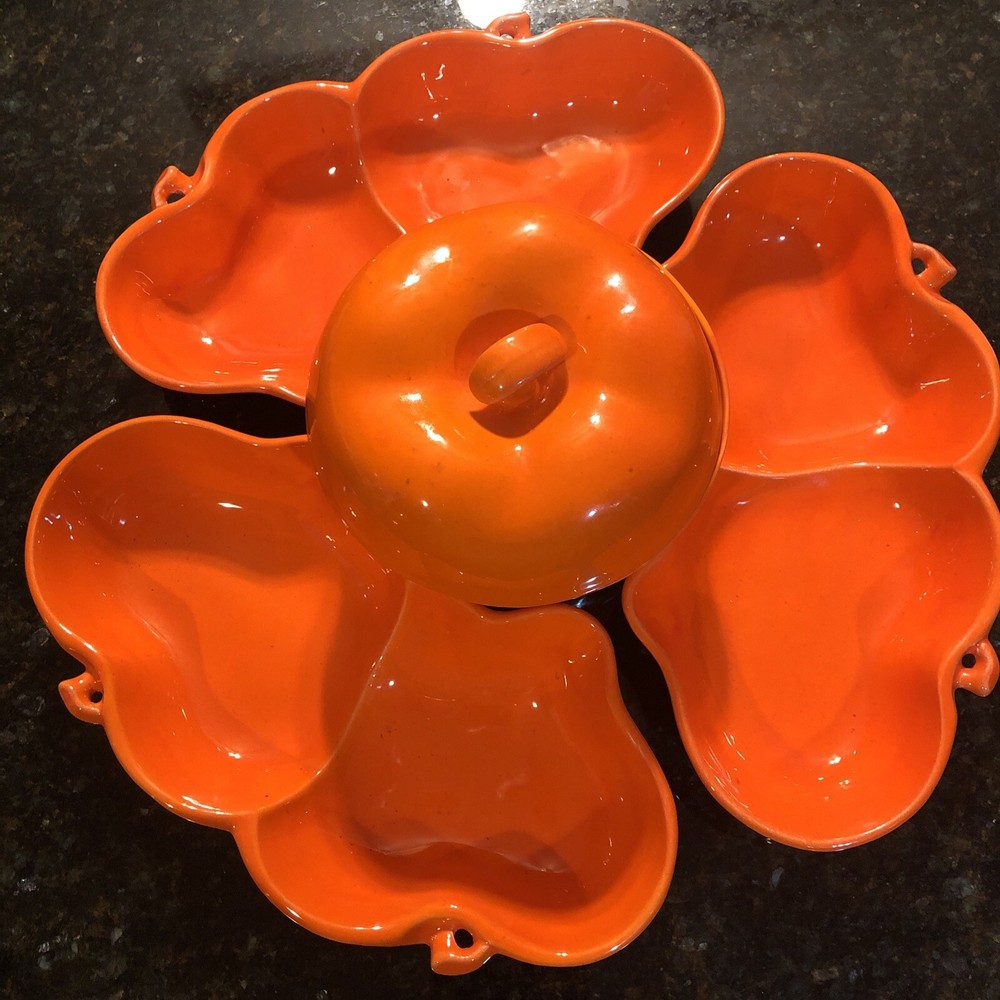 Vintage Maddux 3275 IL Orange MId Century Modern Apple and 3 Trays. Small chip bottom rod one tray Little scuff mark on apple Very bright and very mid century modern...