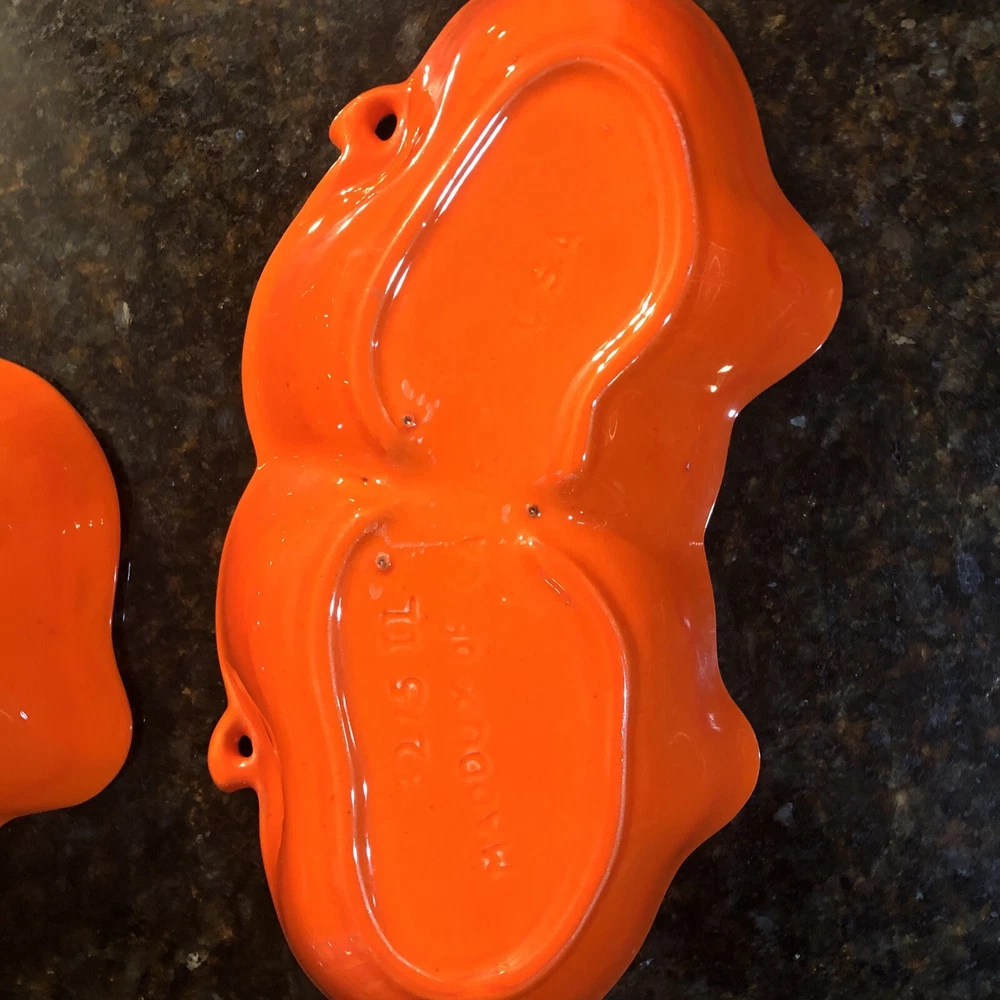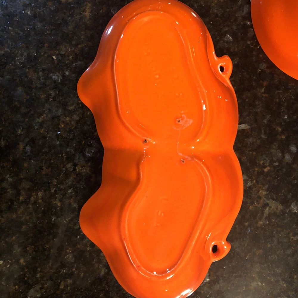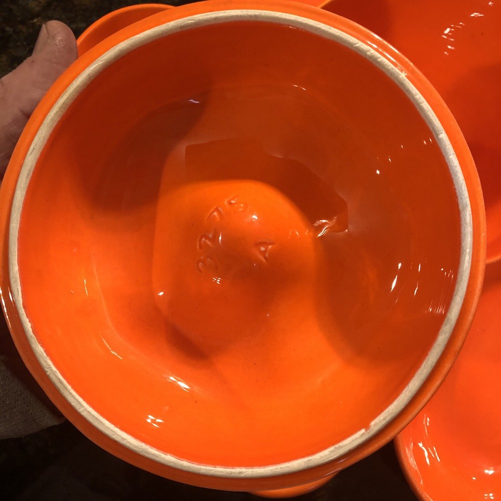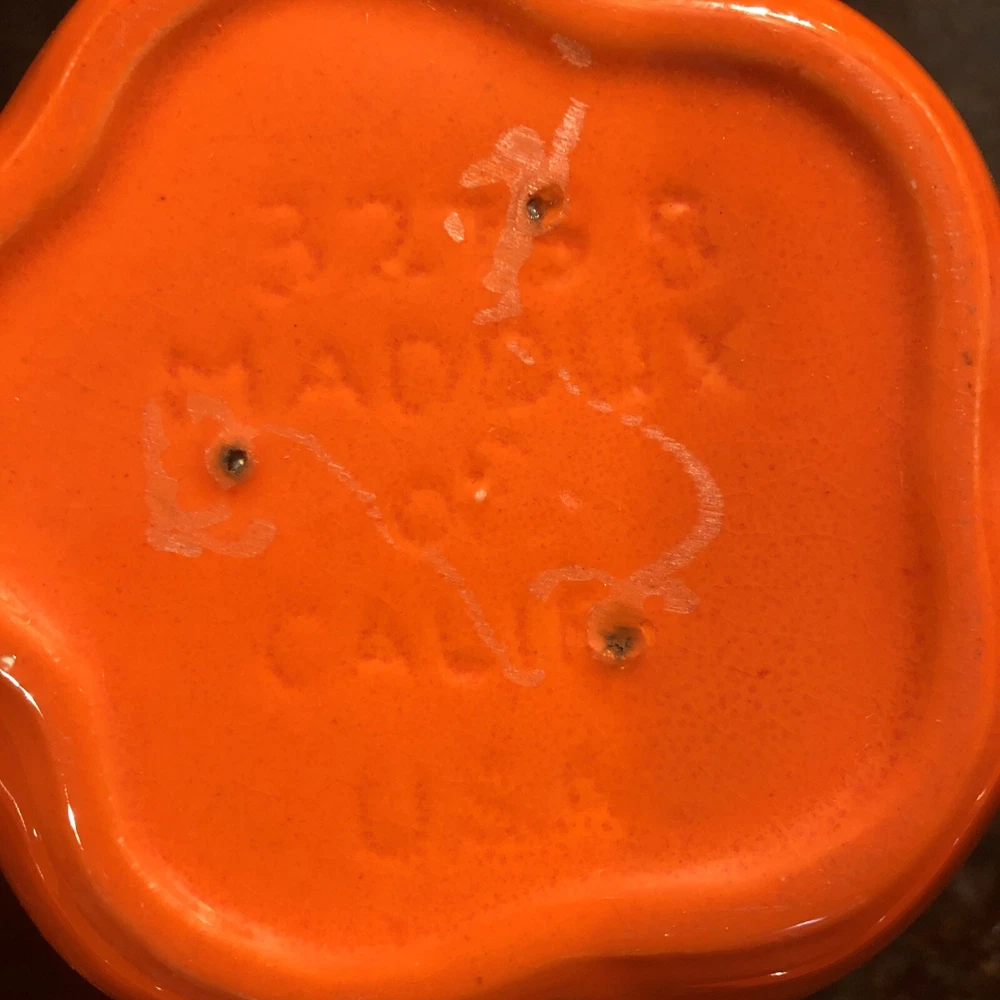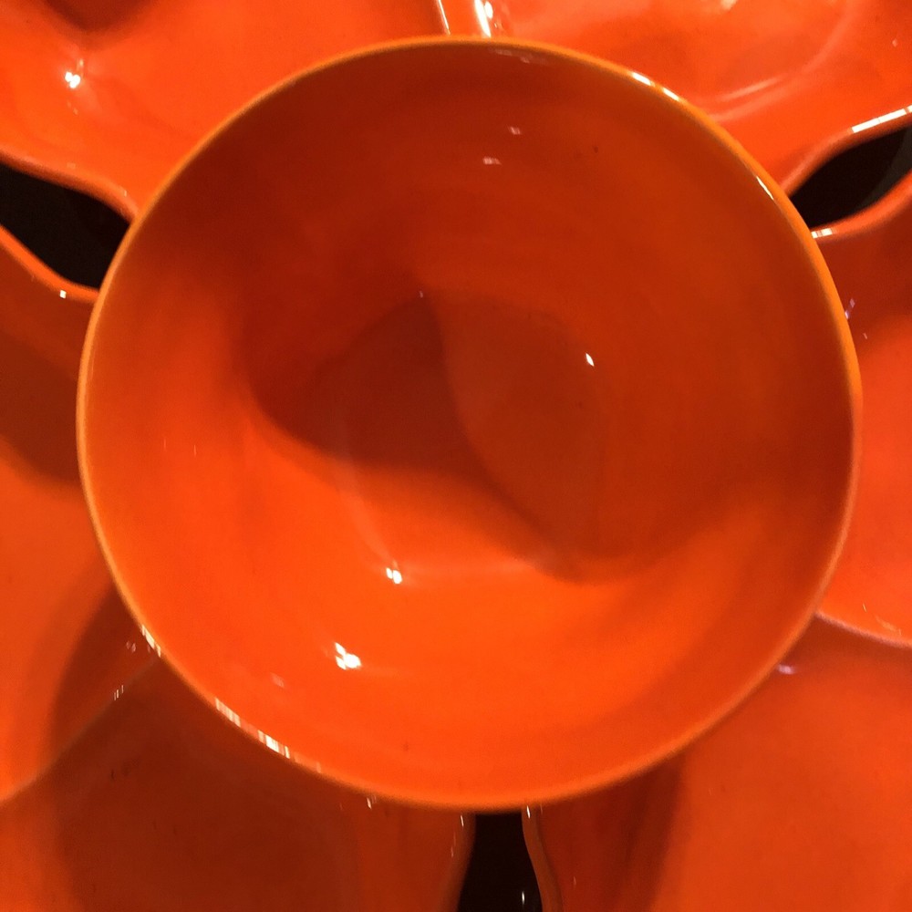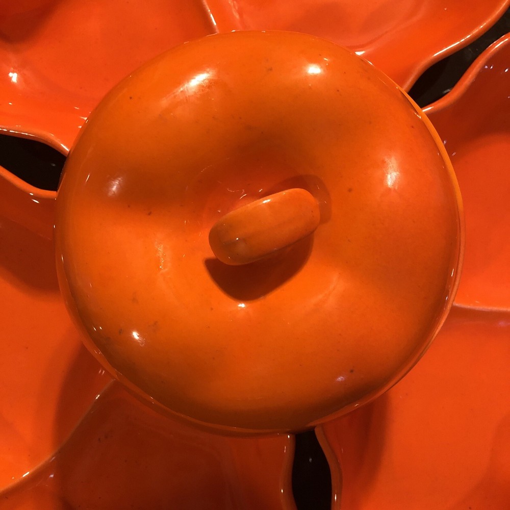 Vintage Maddux 3275 IL Orange MId Century Modern Apple and 3 Trays. Small chip bottom rod one tray Little scuff mark on apple Very bright and very mid century modern