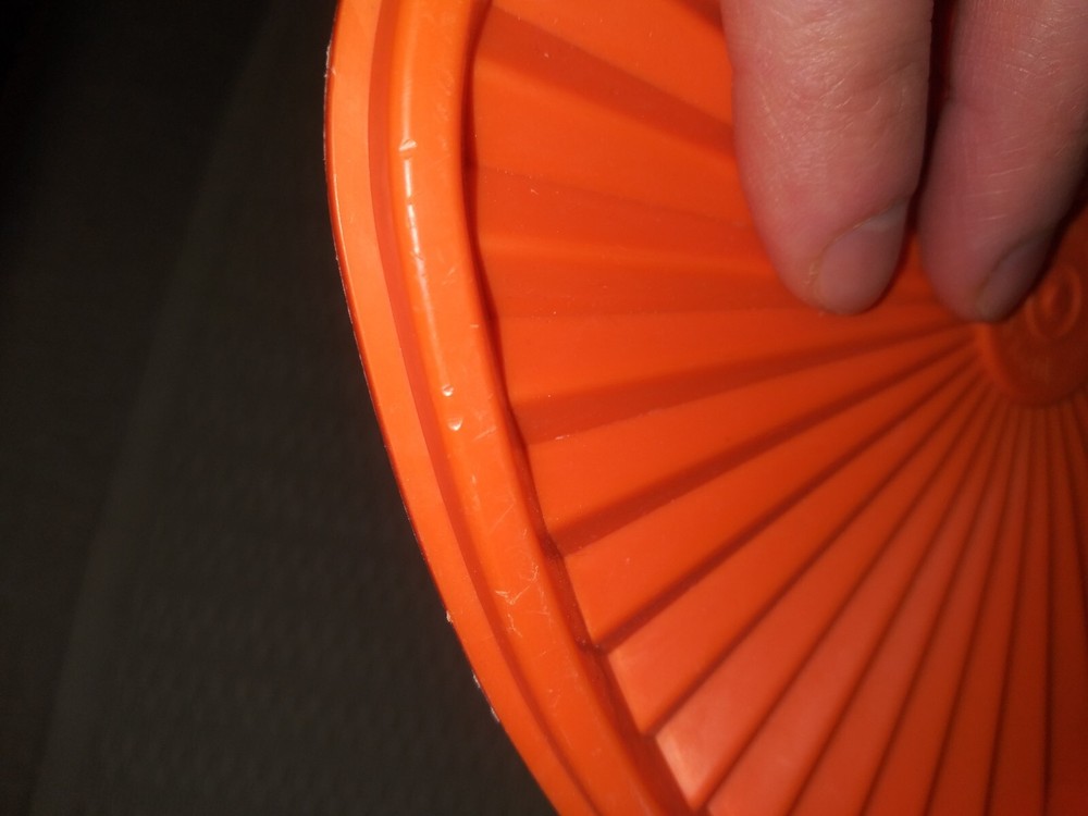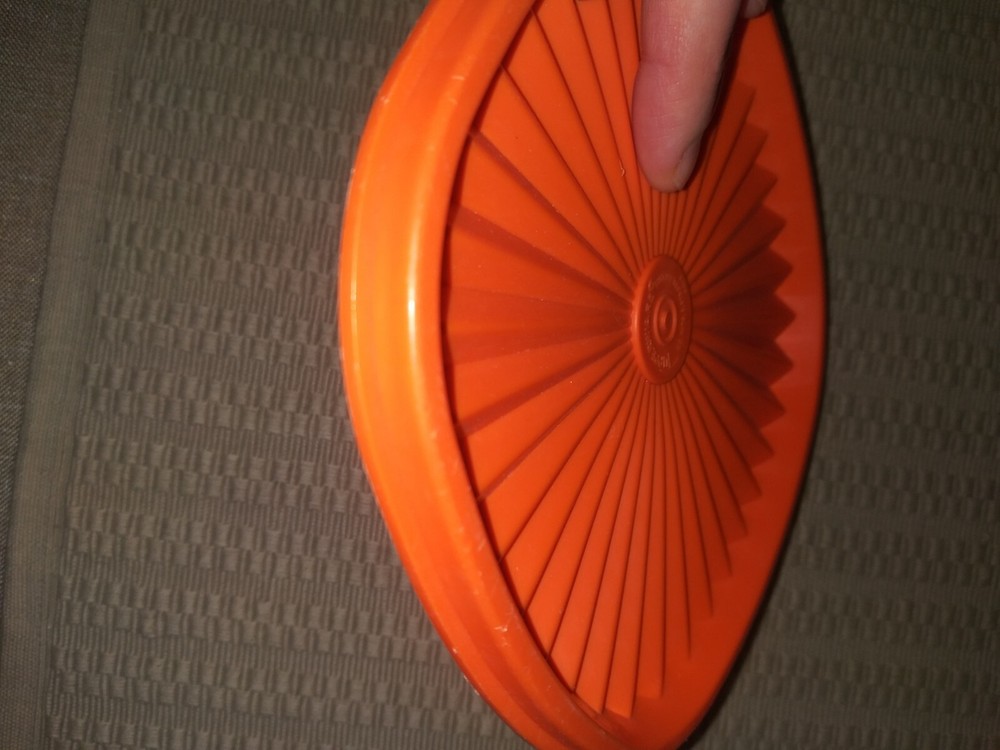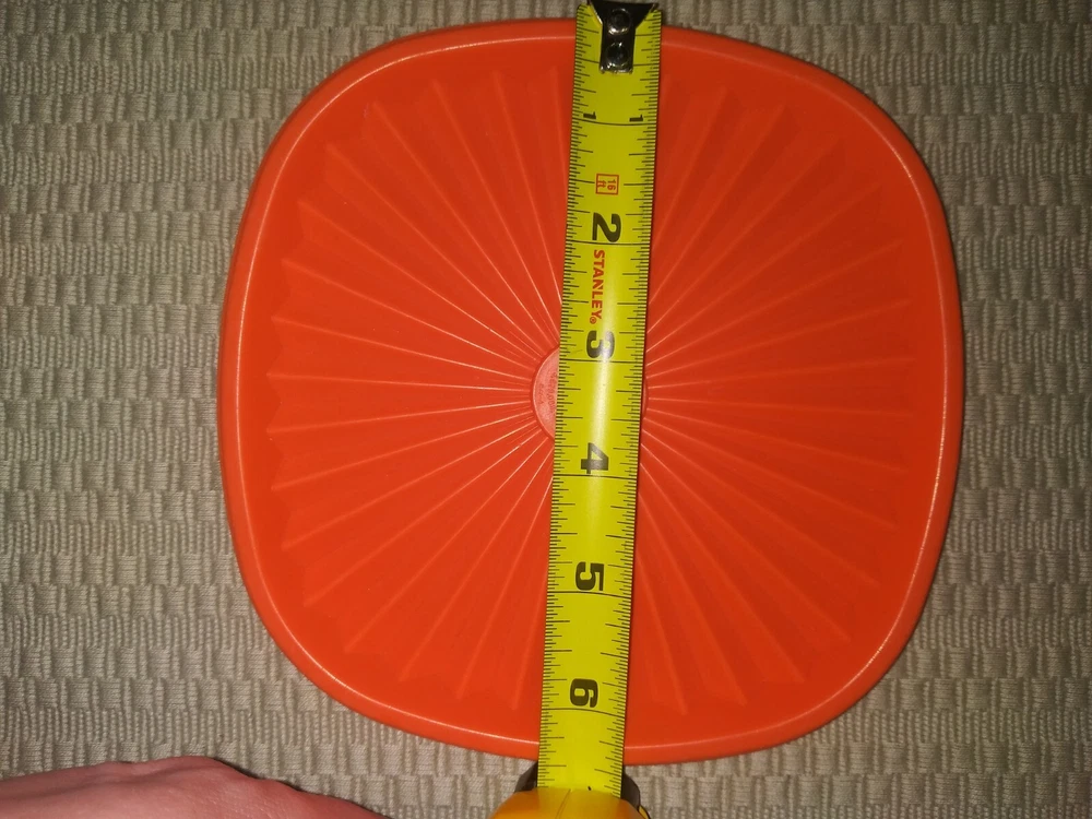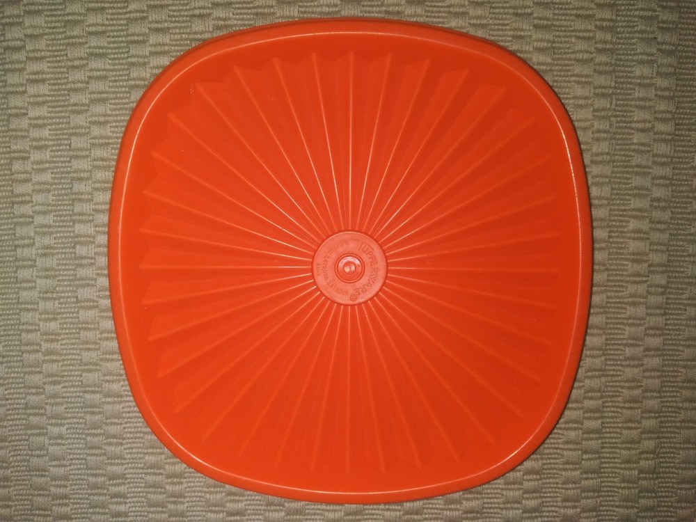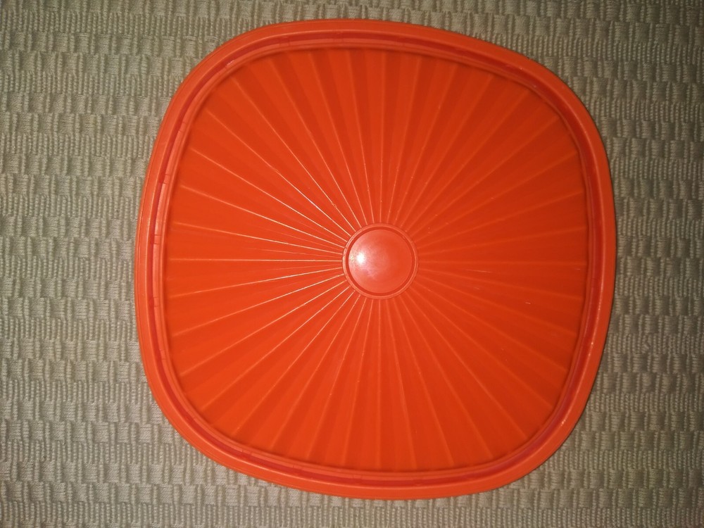 This vintage Tupperware lid is a must-have for collectors and anyone looking for a unique addition to their kitchen storage collection. The square shape and vibrant orange color with a starburst design make it a standout piece. It fits a 6-inch container and comes from a well-known brand, Tupperware. Made with durable plastic material, this lid is perfect for storing food items and keeping them fresh. Add it to your collection today! This Lid is in good condition overall, with normal wear and scuff marks. Please refer to the pics for the exact condition, color, size and measurements. I am selling this as-is. Please feel free to ask me any questions. Thank you. :)