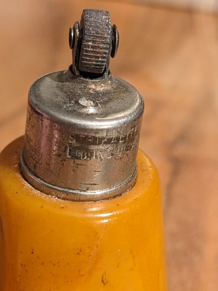 Unique, rare, and collectible Strikalite lighter. Hard to come by, and I've never seen one in this style. I've never tried to get it functional, so I don't know what it would need. But even as is, it makes a great collection addition.