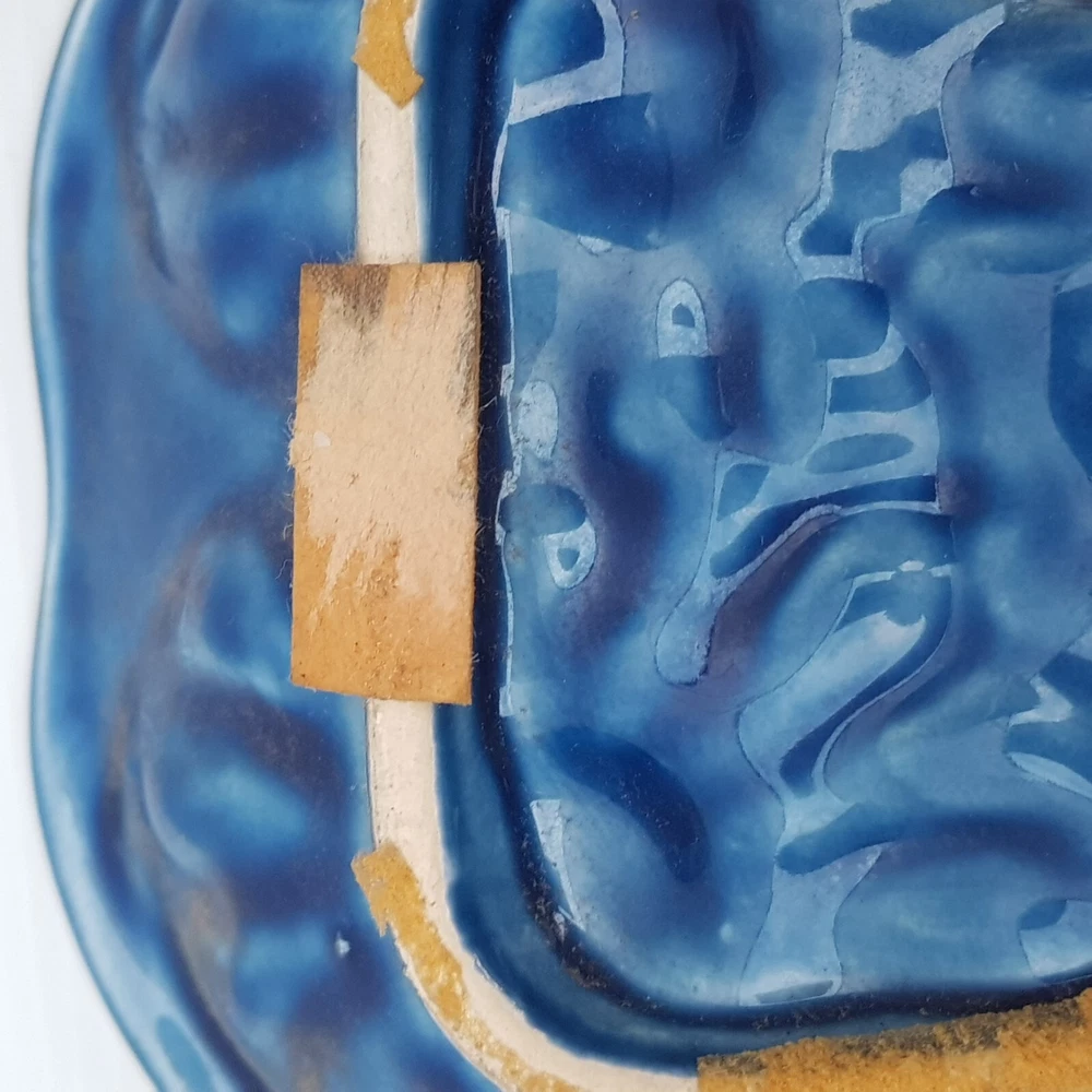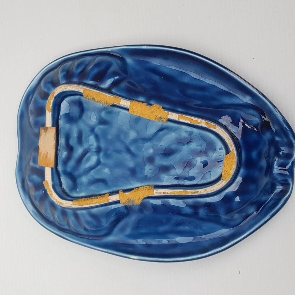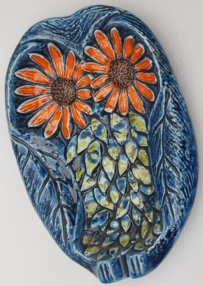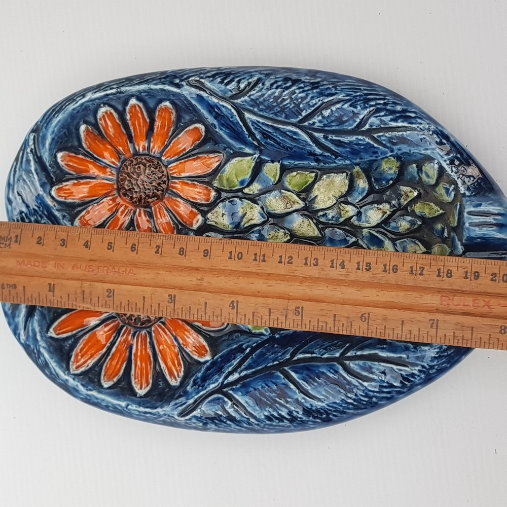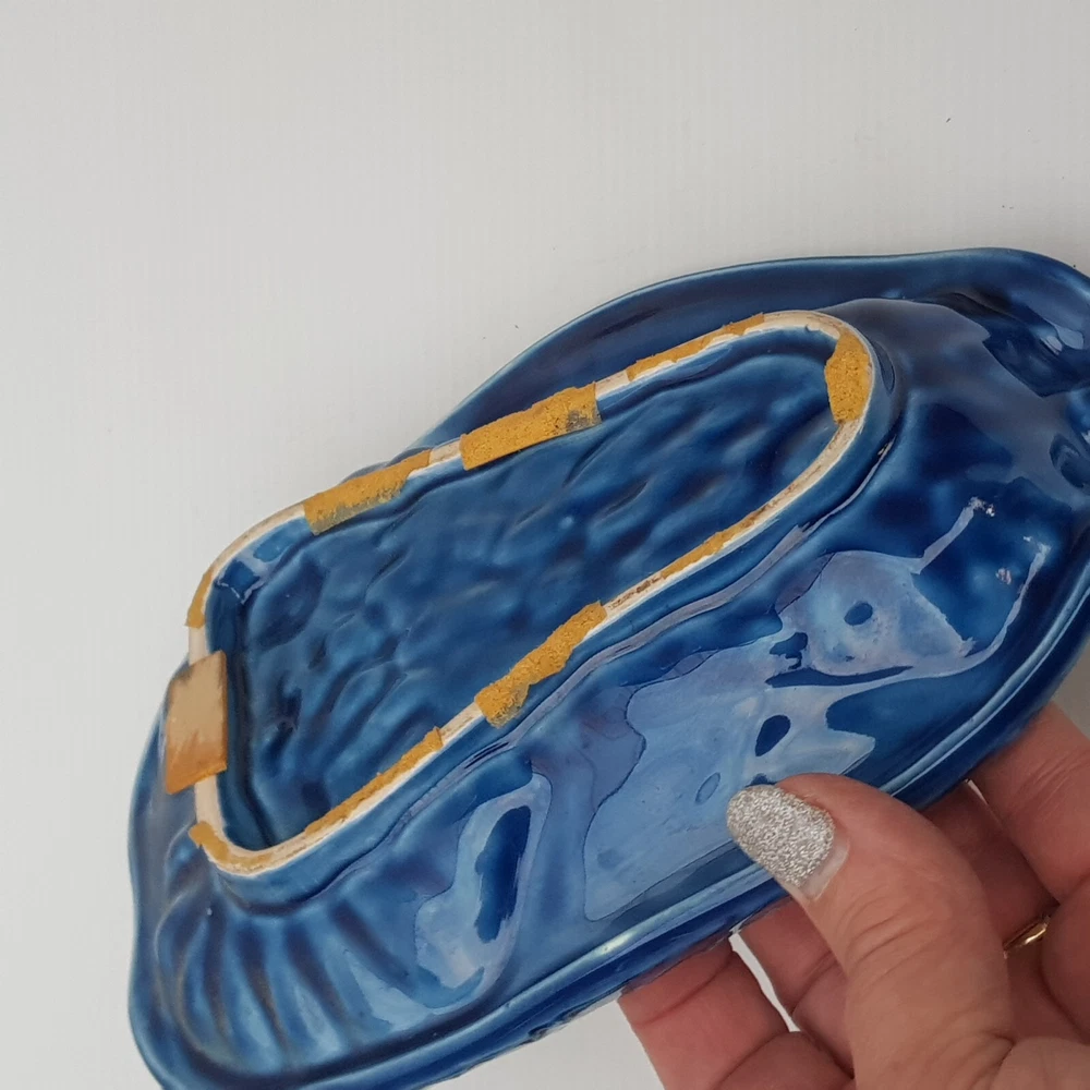 This is a really stunningly bright coloured dish which is of an owl. With the foot rests at the base and on the side I wonder if it was meant as an ashtray. However it is utterly beautiful and stunning and the purpose will be for you to decide. It also has the feel of majolica with the textured feel.
