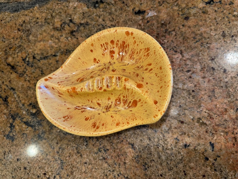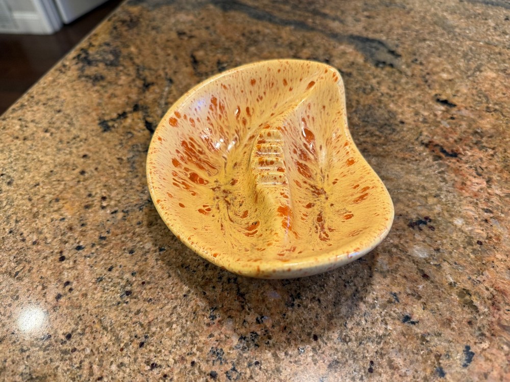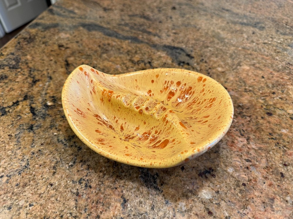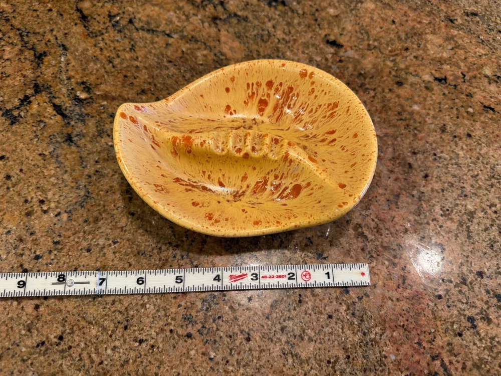 Vintage Mid Century Ceramic Speckled Orange Yellow Ashtray 7"
