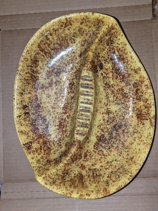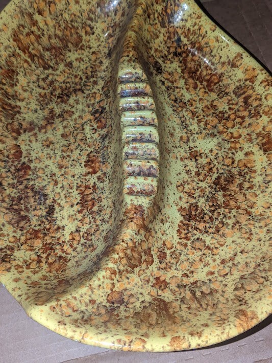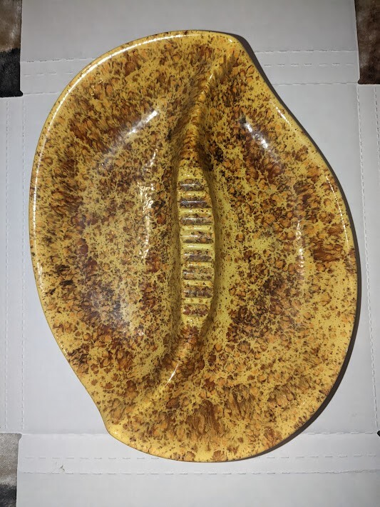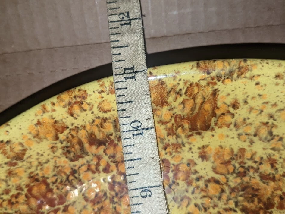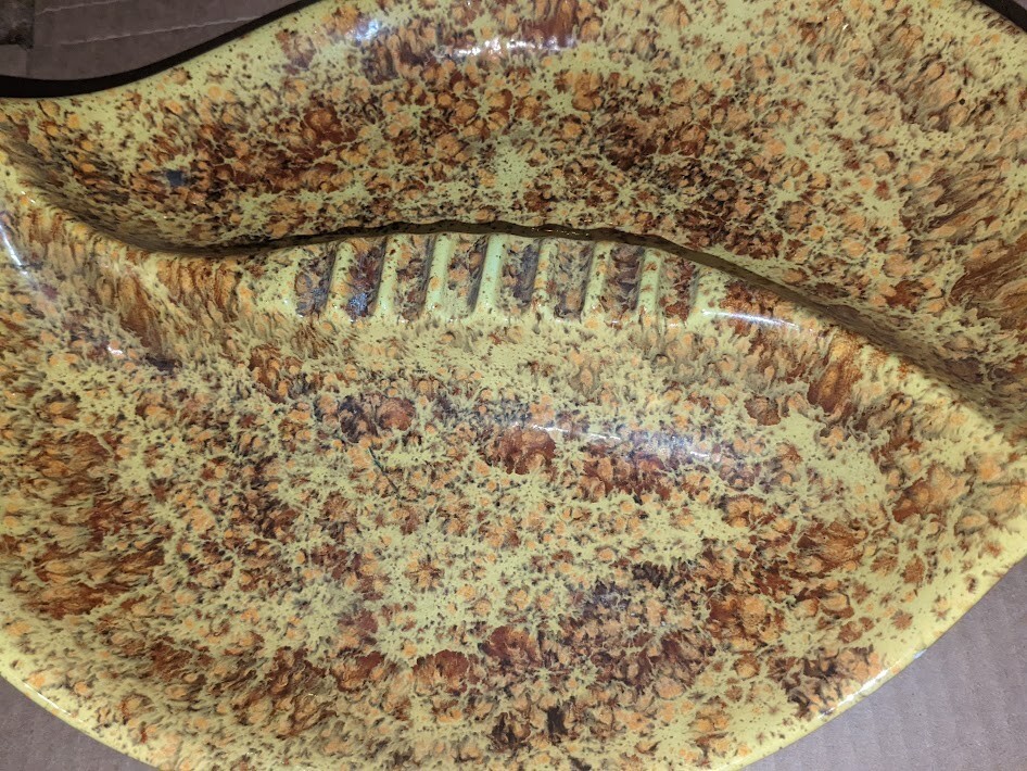 Discover a touch of retro charm with this Vintage Mid Century Drip Glaze Ashtray. Its vibrant retro yellow, brown, and orange hues are sure to add a pop of color and a nostalgic flair to any room. The large pottery piece is perfect for collectors and enthusiasts of mid-century design.Crafted with an eye for timeless style, this ashtray's origin remains a mystery, adding to its allure. Its robust design and ample size make it a practical choice for use or display, while its unique drip glaze texture captures the essence of the era's craftsmanship. Measurements are APPROXIMATE: 13" X 11" X 3 to 3-1/2" high... is a curvy ashtray and heights are different on different sides. Letters are on the bottom of the Ashtray... one set "C L" and the other is "L L" DISCLAIMER:We do our best to provide secured merchandise in packages. Should you receiveyour merchandise with any damage from the shipping company, PLEASE: 1) Keep ALLpackaging AND the merchandise, 2) takePhotos and 3) Contact Us As Soon As Possible. All Sales are FINAL and NOReturns. We provide photos with the merchandise that you will receive.Please ask ALL questions before making your purchase. We Always providemeasurements in photos, so PLEASE look for them and if you do not see ameasurement for something, please ask us for it. Some measurements areAPPROXIMATE since the shape of some items are hard to get exact, but we do ourbest to provide the closest measurements. Thank you for your business.