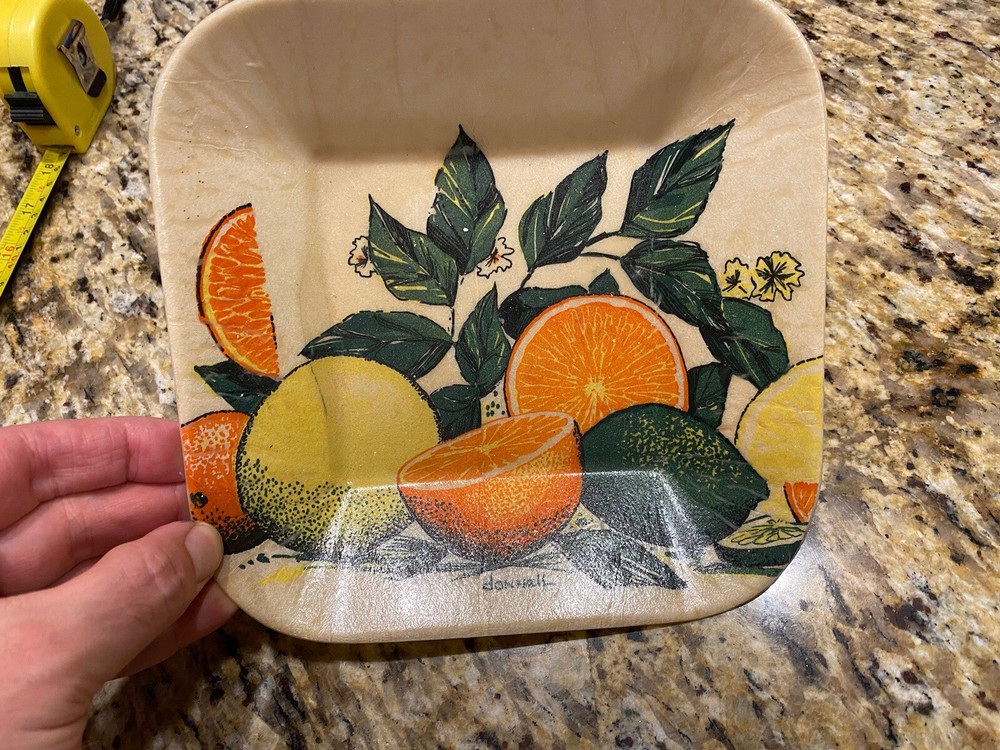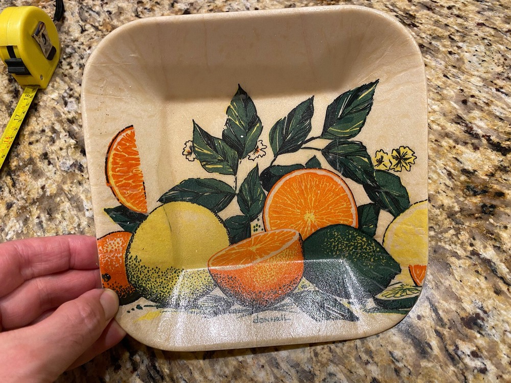 Vintage Mid Century Fiberglass Fruit Shallow Bowl Orange Citrus Fruit . Condition is Used. Shipped with USPS Ground Advantage.