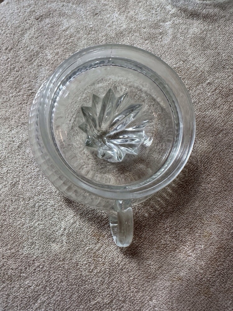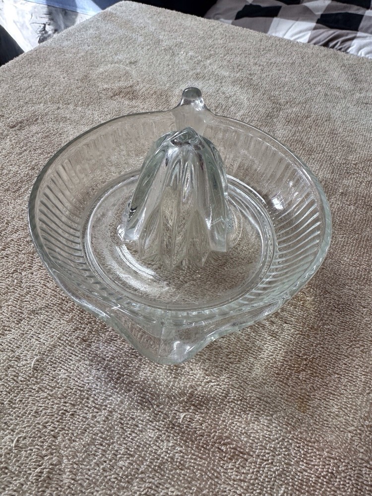 Add a touch of vintage charm to your kitchen with this mid-century glass citrus juicer. The retro design is a collectible and perfect for those who love mid-century style and the glass material adds a touch of elegance. It's a must-have kitchen tool that takes up minimal space and is easy to clean.