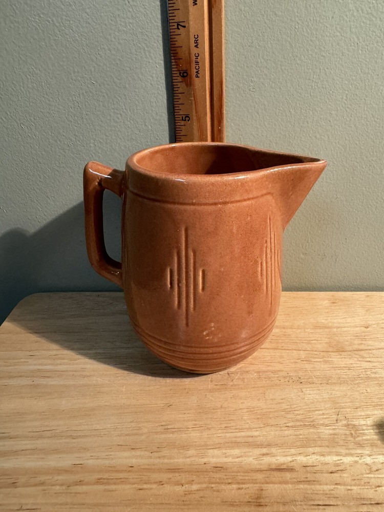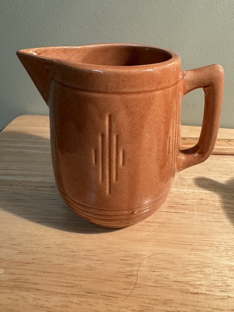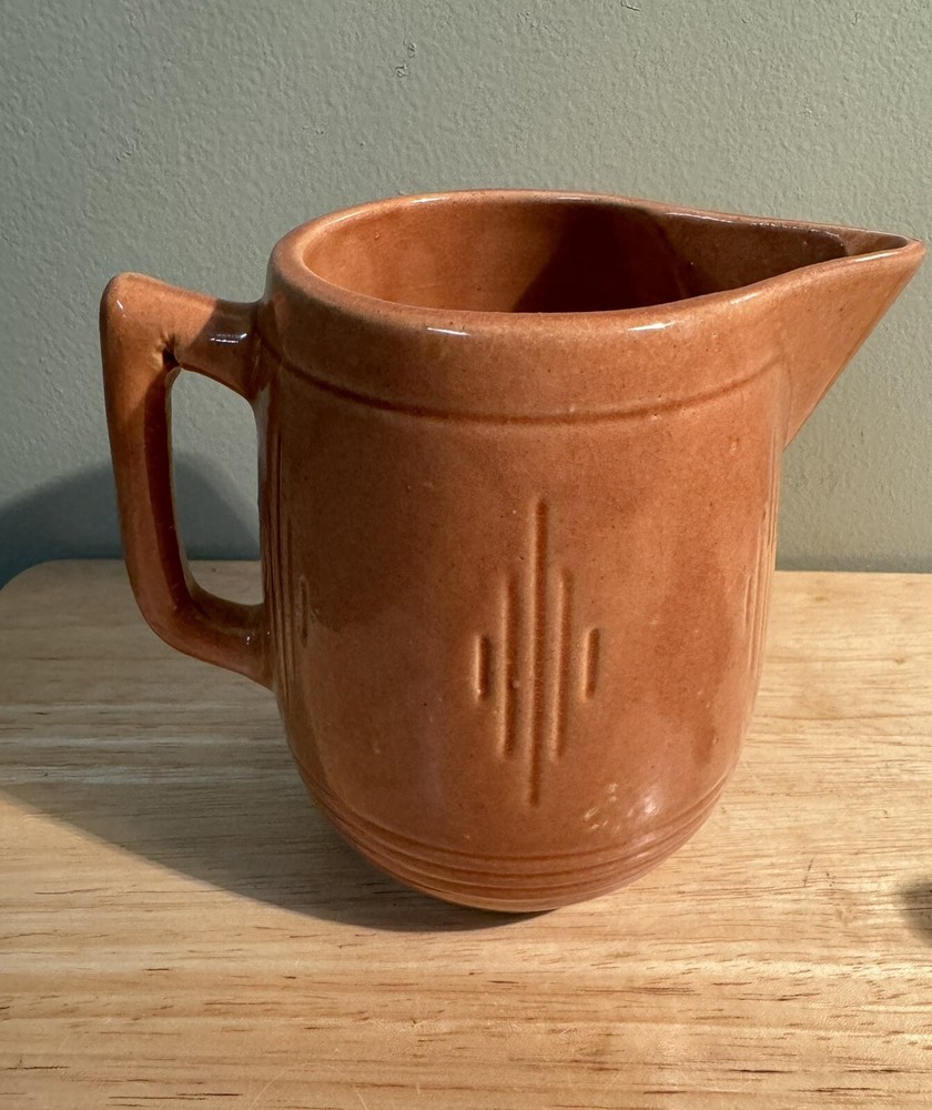 Vintage Mid Century Glazed Ceramic Creamer Pitcher Red Orange