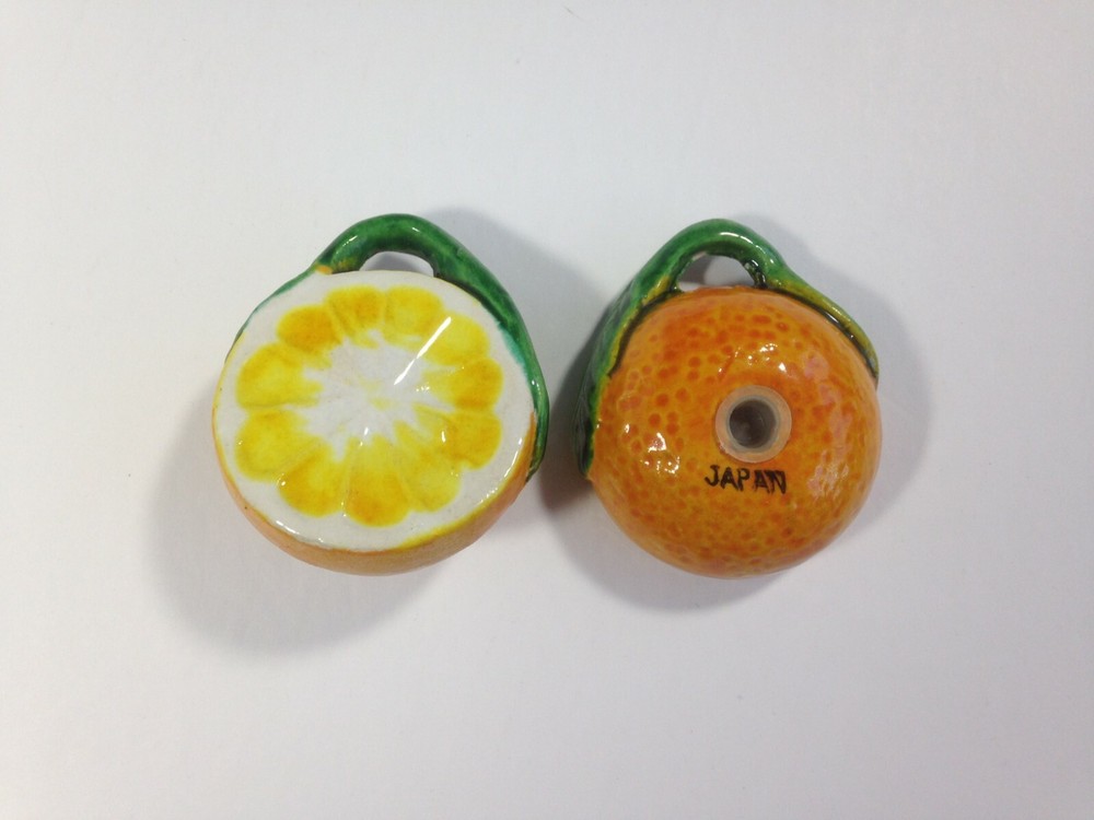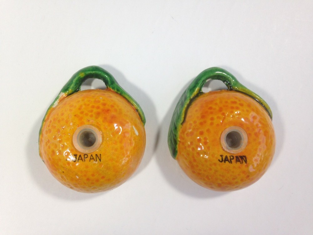 Vintage Mid Century Hanging Orange Halves Salt & Pepper Shakers for Stand Japan Vintage Mid Century Hanging Orange Halves Salt & Pepper Shakers Meant to be hung on a small stand. Made in Japan In very good condition. One small area has no paint, but I believe this is a manufacturing imperfection rather than a chip. Customs duty - Buyers outside Canada: Import tariffs, duties, taxes, and charges are not included in the item price or shipping cost. These charges are the buyer's responsibility. Please check with your country's customs office to determine what these additional costs will be prior to bidding or buying.