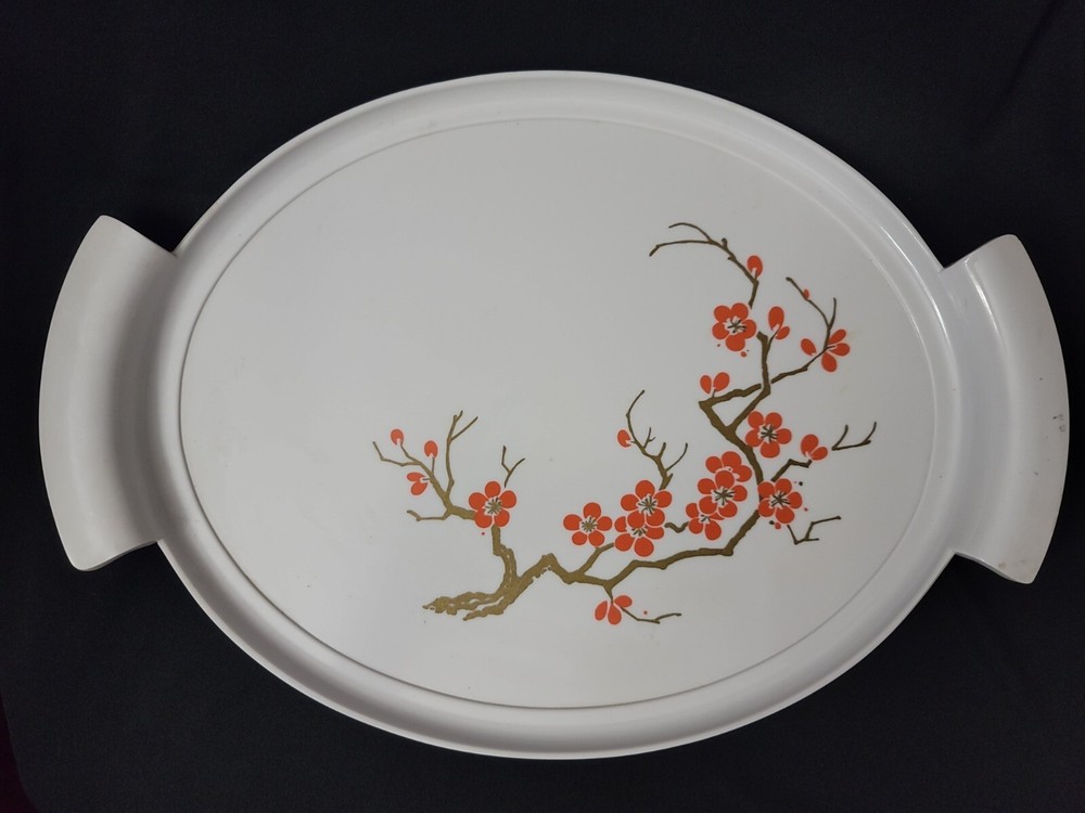 Imperial Garden Tray Vanity Dresser Serving Asian Orange Flowers Vintage....