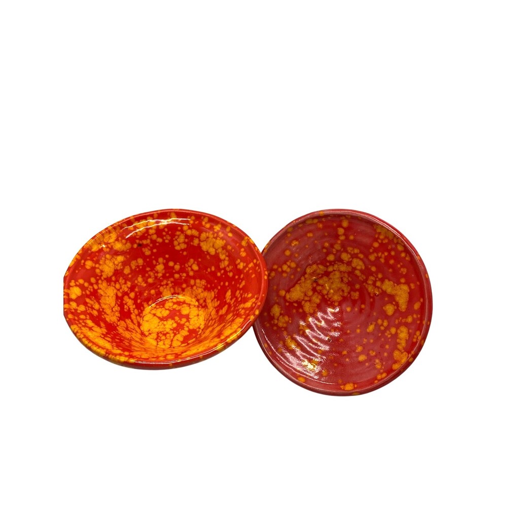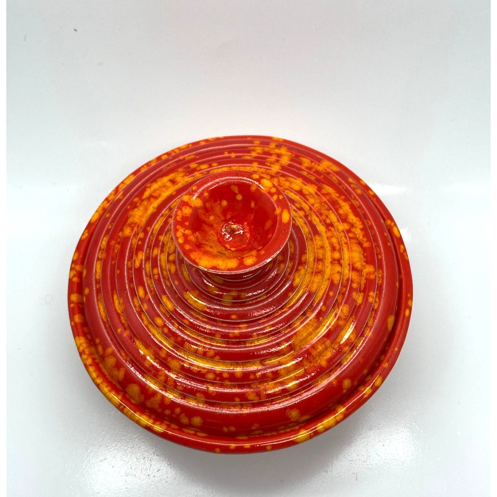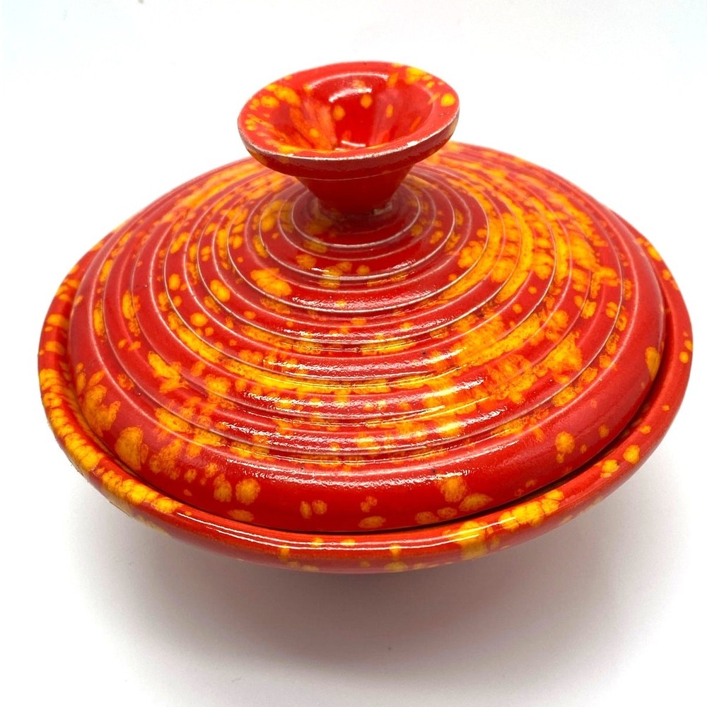 <![CDATA[<div>Midcentury Mid Century Pottery Fire Orange Red with Lid 1969 Trinket dish Sugar bowl Decor Signed