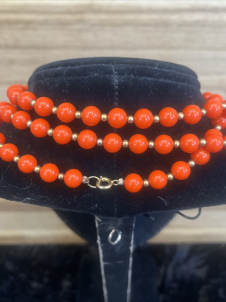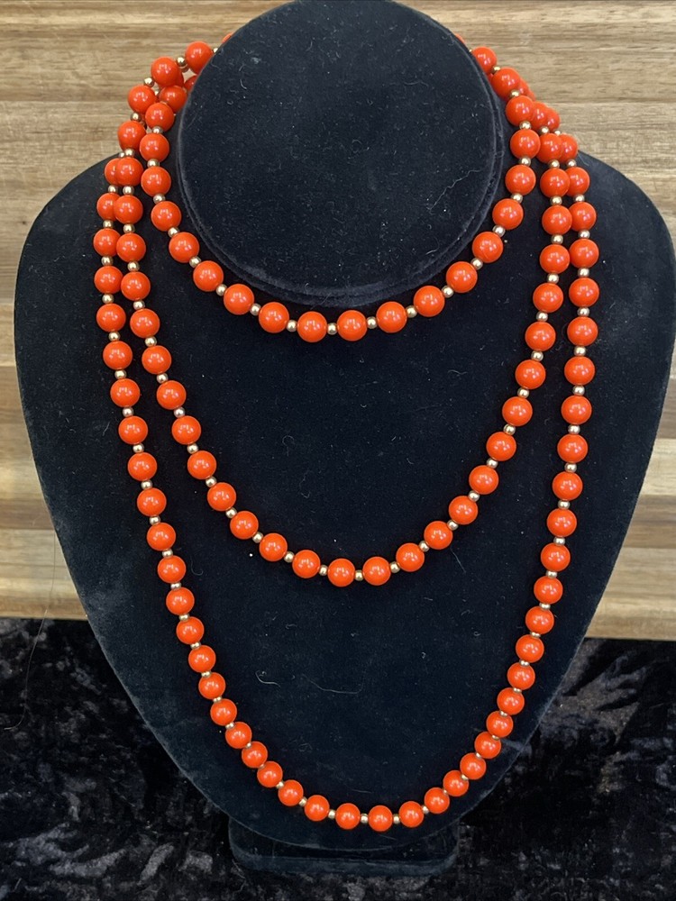 Vintage Mid Century Orange Gold Long Necklace 58 Inches Styling Options