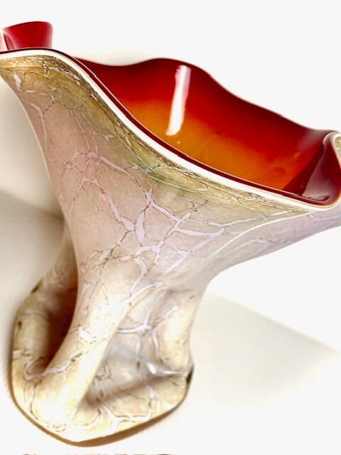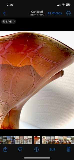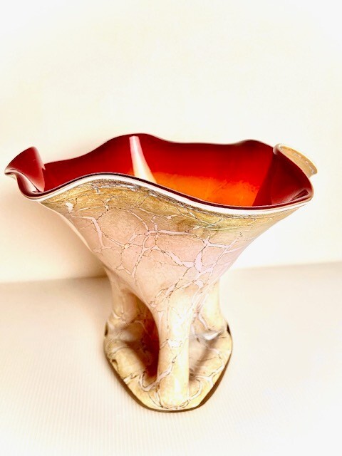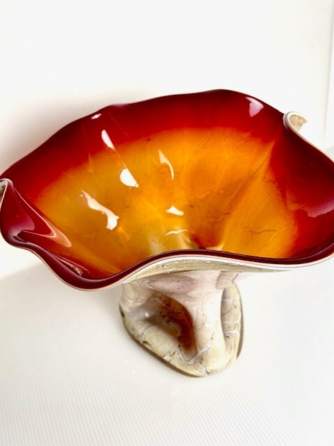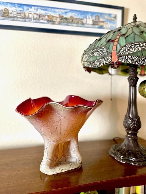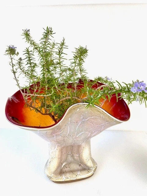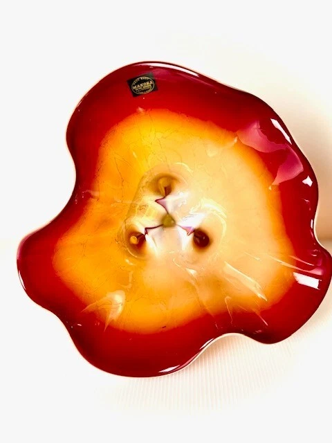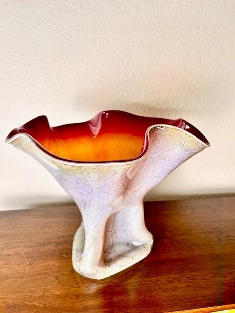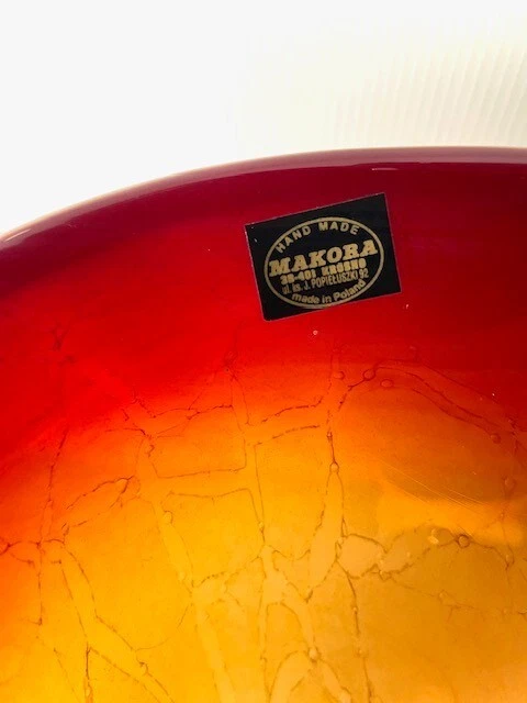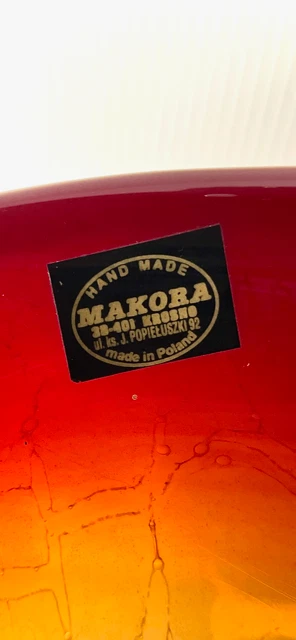 This elegant Makaro handmade glass vase was a centerpiece in my grandma’s parlor for many years. It was later gifted to me and has been in a box for years so it has remained in excellent condition after all these years. It’s in great condition without chips or scratches or any discolor. (See photos for details) Handmade Makaro Round glass vase Condition is excellent Height: 10 inches Top diameter: 12 inches Bottom diameter: 6 inches Weight: 5.4 pounds $149/104.00 View our catalog of hand picked treasures from the past on Etsy - Appleschmapple 28124
