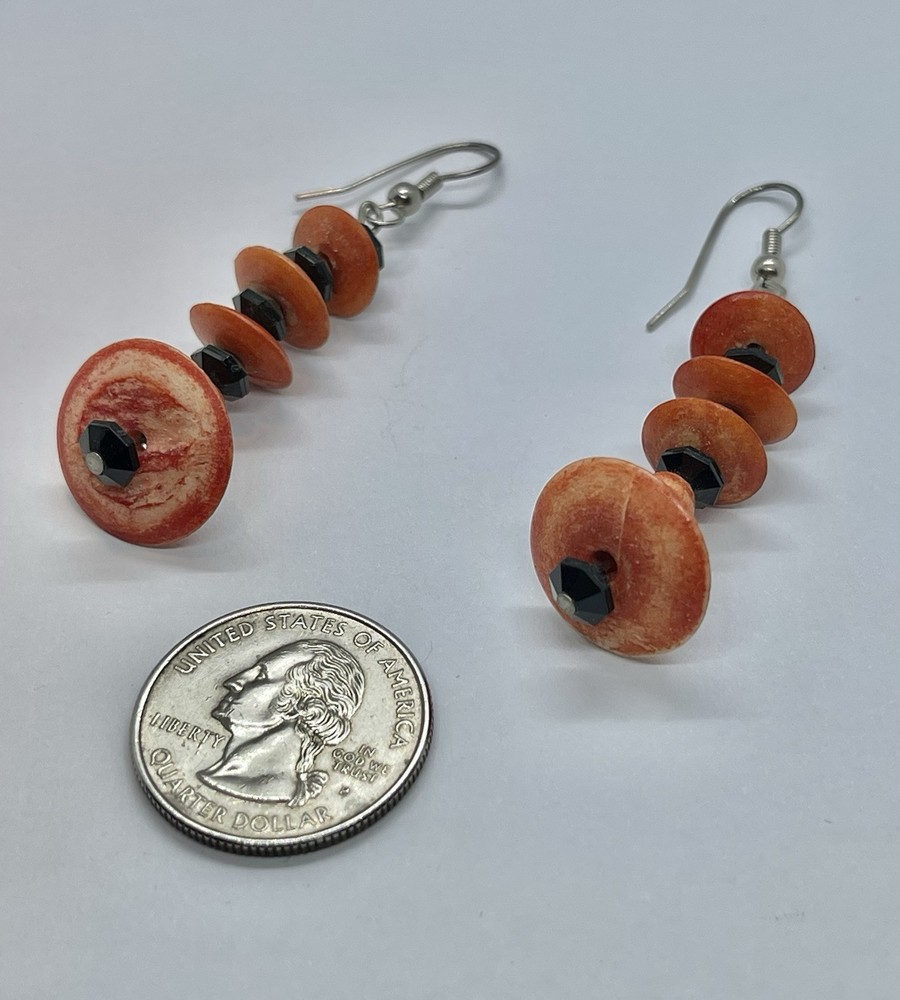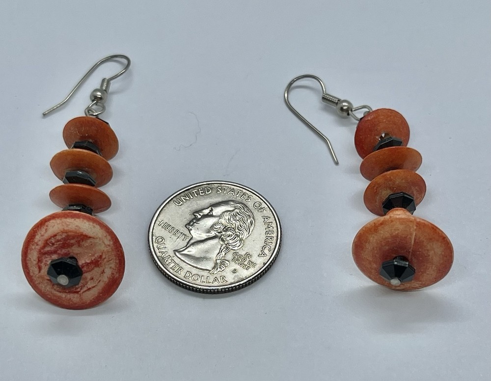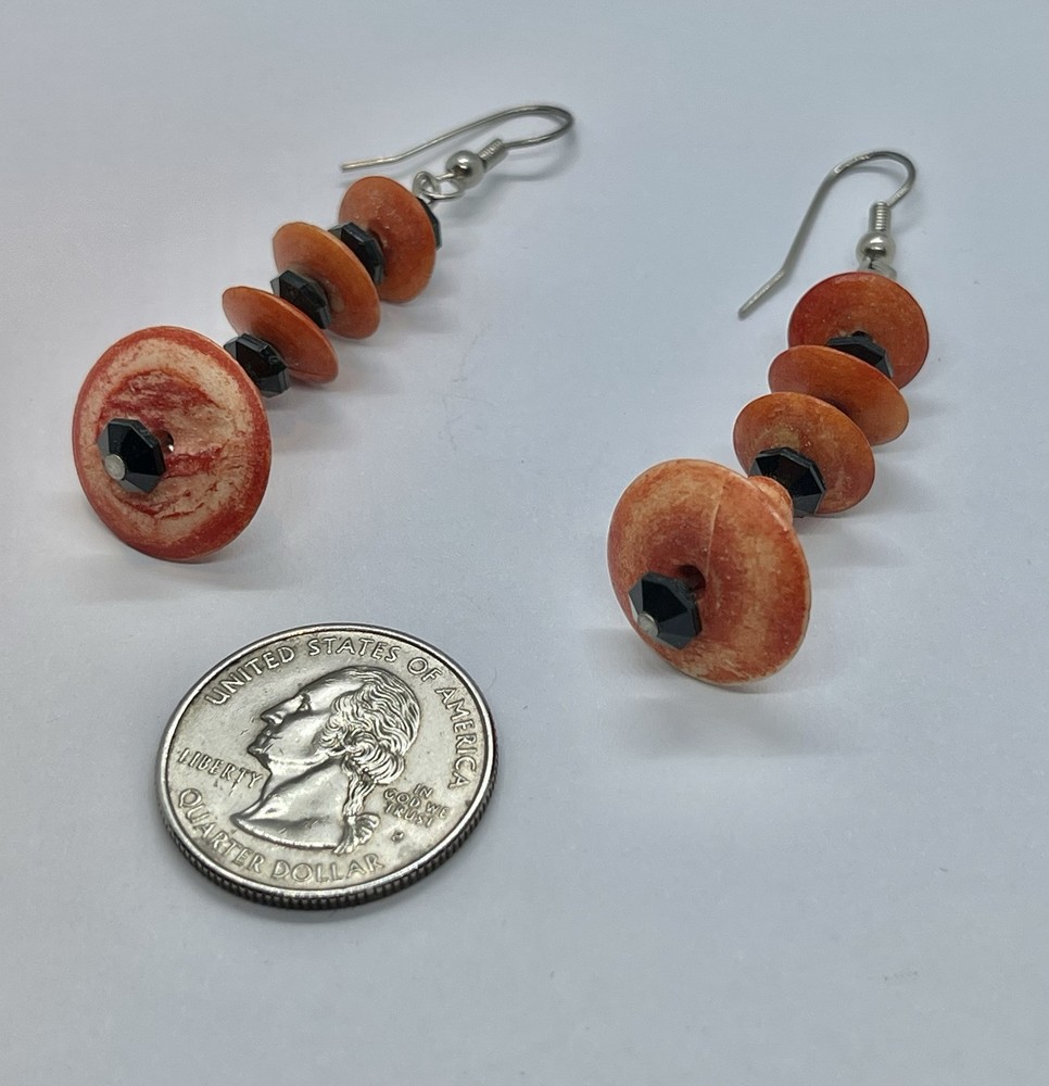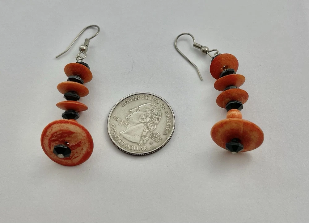 This auction is for a pair of Vintage Mid Century Mod Orange & Black Faceted Beads Silvertone Earrings…. #Mod #GoGo….hangs approx 2 1/4” ….measures approx 1 2/2” long and 3/4” wide….unsigned …. Pre loved... please see my photos as they are part of my description….. I have other jewelry on ebay and I happily combine shipping ..... Questions - please email me before auction ends. Winning bidder to pay shipping and handling.... International buyers will pay at a different rate, see below ....Payment is due within 24 hours of auctions end. .......THESE TERMS ARE NOT NEGOTIABLE AFTER AUCTION ENDS..... International Buyers – Please Note: * Import duties, taxes and charges are not included in the item price or shipping charges. These charges are the buyer's responsibility. * Please check with your country's customs office to determine what these additional costs will be prior to bidding/buying. * These charges are normally collected by the delivering freight (shipping) company or when you pick the item up – do not confuse them for additional shipping charges. * We do not mark merchandise values below value or mark items as "gifts" - US and International government regulations prohibit such behavior. OTHER IMPORTANT INFORMATION Most of the items I offer are bought on the secondary market and therefore I do not know the history behind them. I strive to purchase and sell only quality items and once they come to my home they are stored in a clean, smoke-free environment. I will do my best to describe each item, pointing out any missing items, minor flaws, etc. however, being only human - there may be an occasion when something has been overlooked. It is never my intention to deliberately withhold information or misrepresent the item in anyway. Please keep in mind these items have been previously owned and are not new. Please review the description and the pictures carefully and if I can answer any questions or provide you with additional photos please do not hesitate to e-mail me before bidding