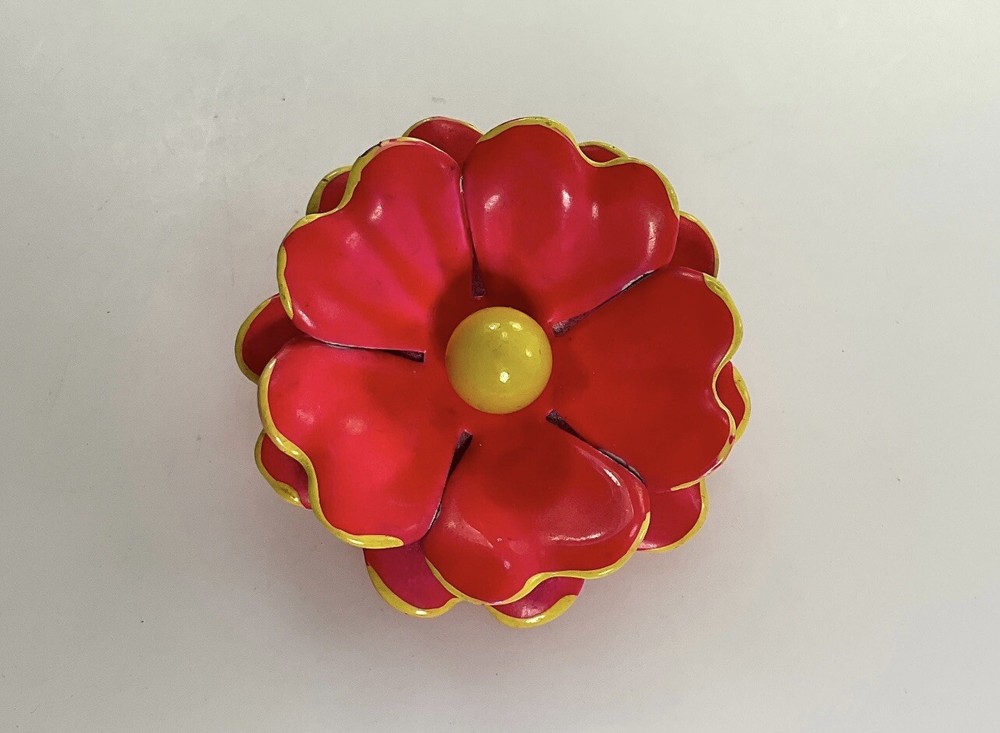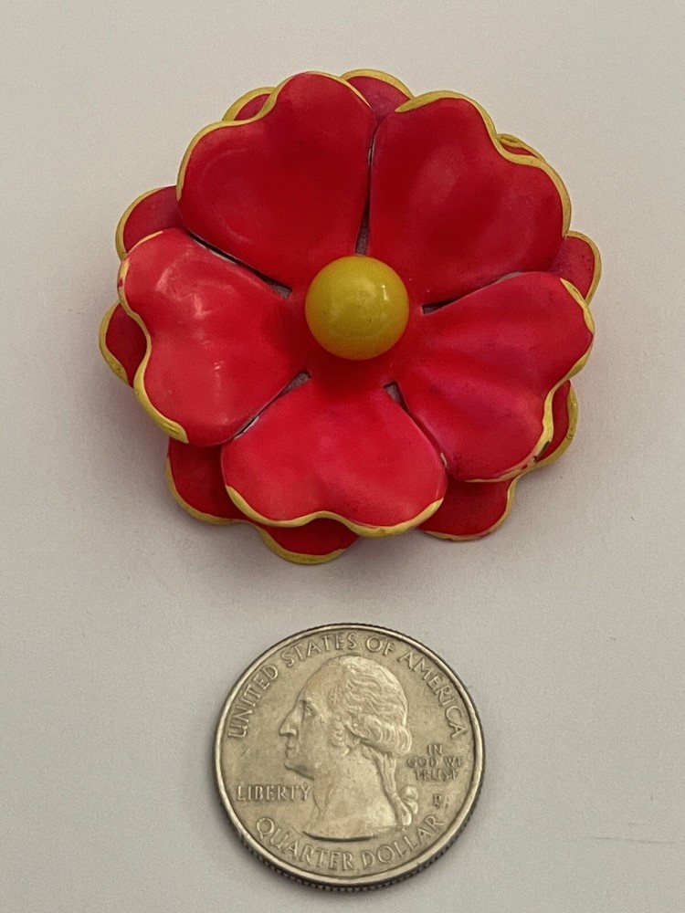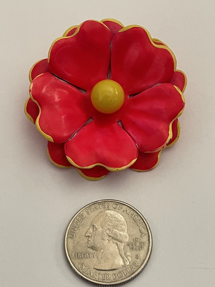 This auction is for a Groovy Vintage Mid Century Mod Pinkish Orange & Yellow Flower Brooch #HippyChic….measures approx 1 1/2” wide and Long ...in lovely preloved condition ... Not signed ….. I have other jewelry on Ebay and happily combine shipping.. Questions - please email me before auction ends. Winning bidder to pay shipping and handling, item will be shipped in a first class mail padded envelope. ....Payment is due within 24 hours of auctions end . ……THESE TERMS ARE NOT NEGOTIABLE AFTER AUCTION ENDS..... *** International buyers will pay at a different rate for shipping..I have the auction set for Global shipping, I can change it to USPS shipping on my auction based on the country you live in. Certain countries, I can only use Global Shipping. This can only be done BEFORE the auction ends, please ask first. If you do not ask before, I cannot change it after the auction ends. L International Buyers – Please Note: * Import duties, taxes and charges are not included in the item price or shipping charges. These charges are the buyer's responsibility. * Please check with your country's customs office to determine what these additional costs will be prior to bidding/buying. * These charges are normally collected by the delivering freight (shipping) company or when you pick the item up – do not confuse them for additional shipping charges. * We do not mark merchandise values below value or mark items as "gifts" - US and International government regulations prohibit such behavior. OTHER IMPORTANT INFORMATION Most of the items I offer are bought on the secondary market and therefore I do not know the history behind them. I strive to purchase and sell only quality items and once they come to my home they are stored in a clean, smoke-free environment. I will do my best to describe each item, pointing out any missing items, minor flaws, etc. however, being only human - there may be an occasion when something has been overlooked. It is never my intention to deliberately withhold information or misrepresent the item in anyway. Please keep in mind these items have been previously owned and are not new. Please review the description and the pictures carefully and if I can answer any questions or provide you with additional photos please do not hesitate to e-mail me before bidding