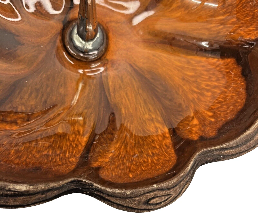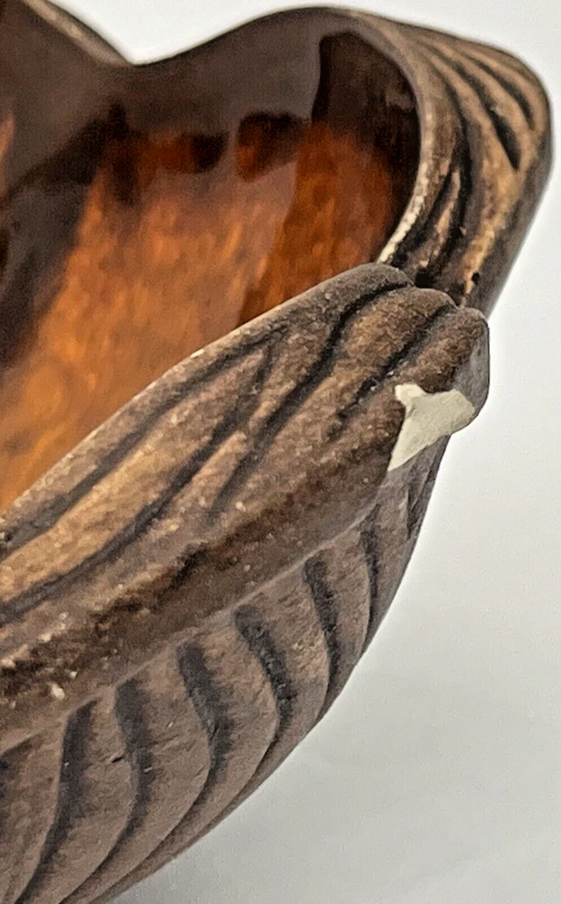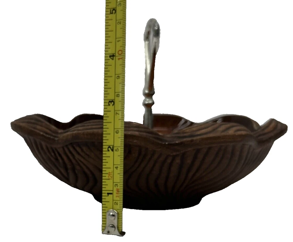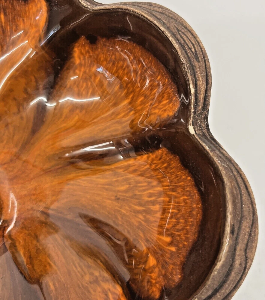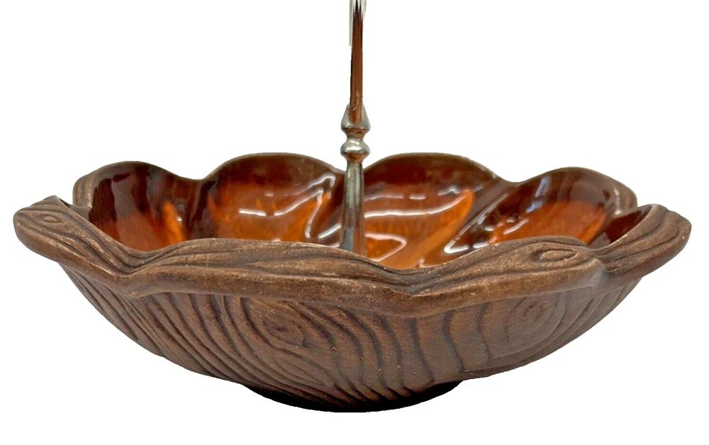 Vintage Mid Century Modern Candy Nut Bowl Orange California Pottery 7205 USA. Has A Chip On The Bottom Of The Rim Of Dish. Some Silver Has FLaked Off The Handle. See Pictures. Thanks For Looking!