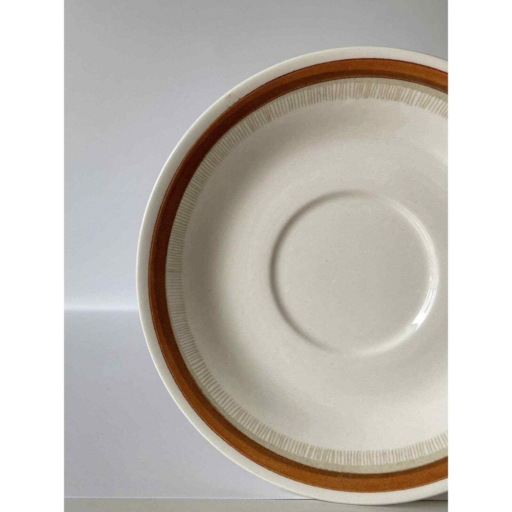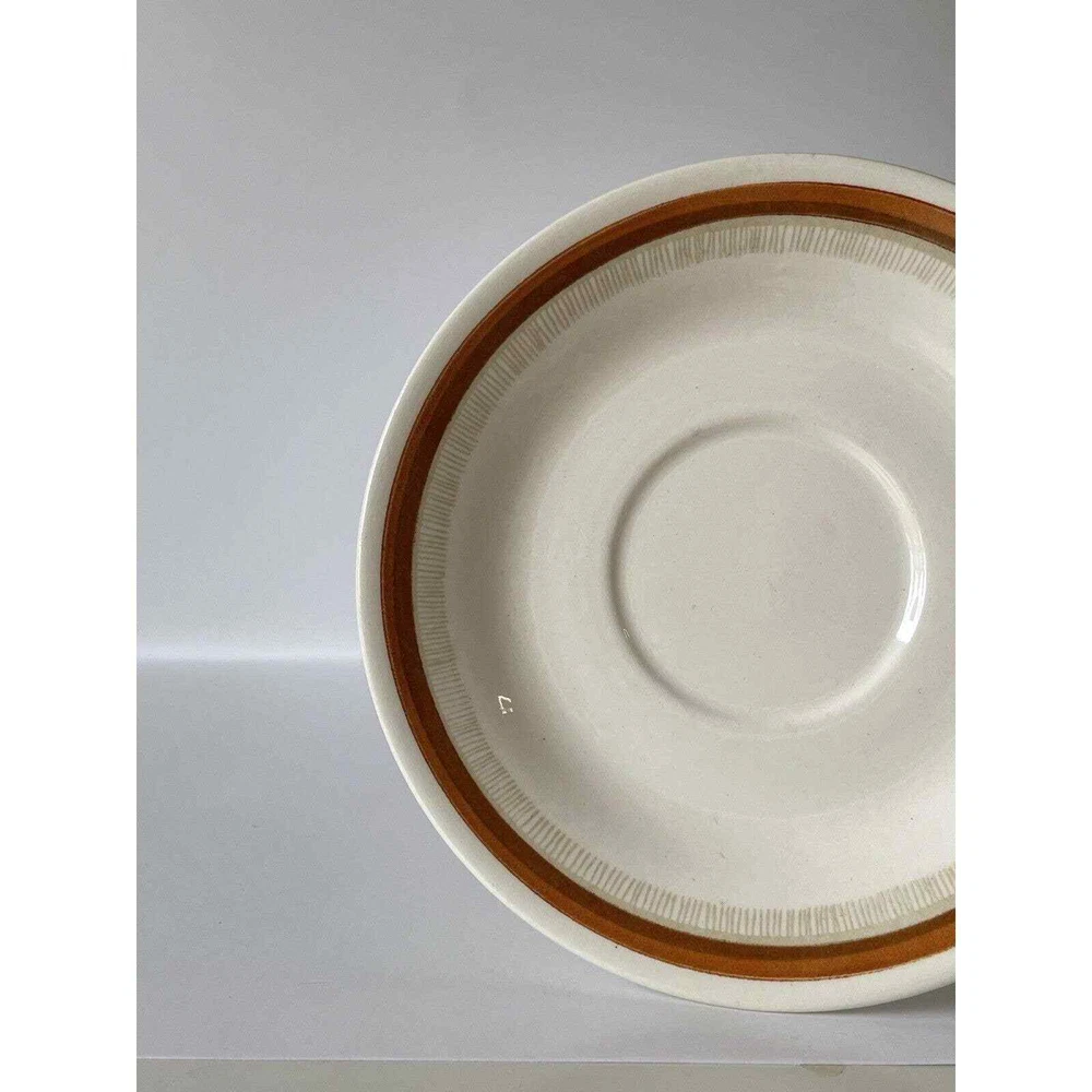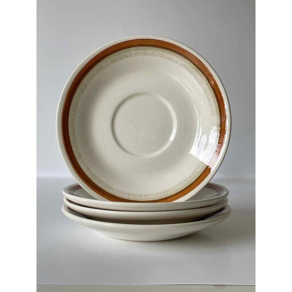 <![CDATA[<div>Vintage MCM orange ceramic saucer plate set for 4, USA made. Items measure: 6 1/4" inches. Items are heavy when packed properly and that will reflect in shipping cost as it is calculated...