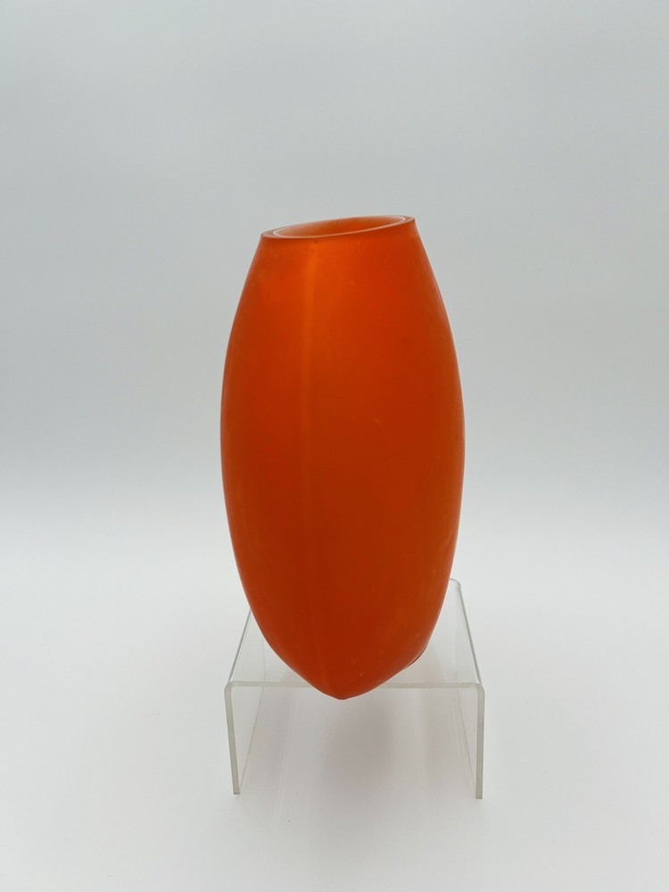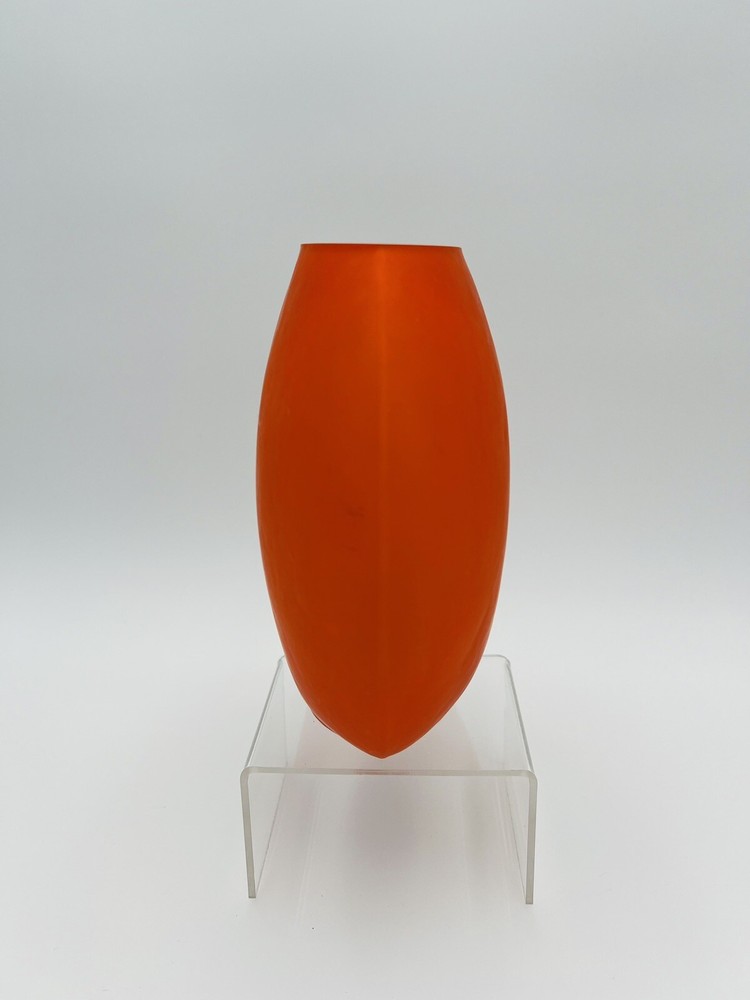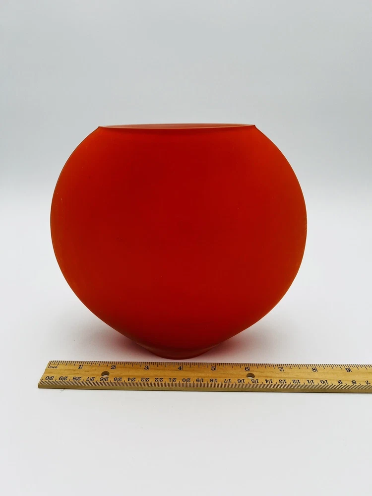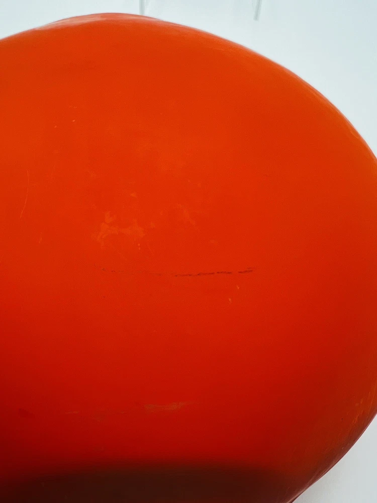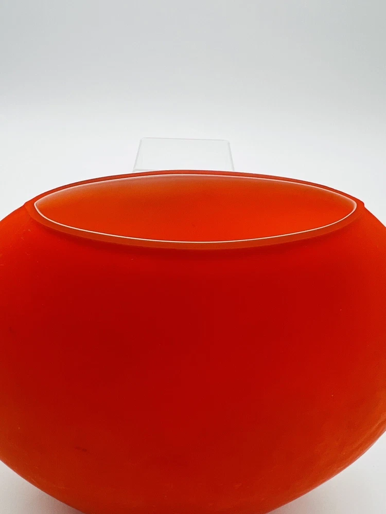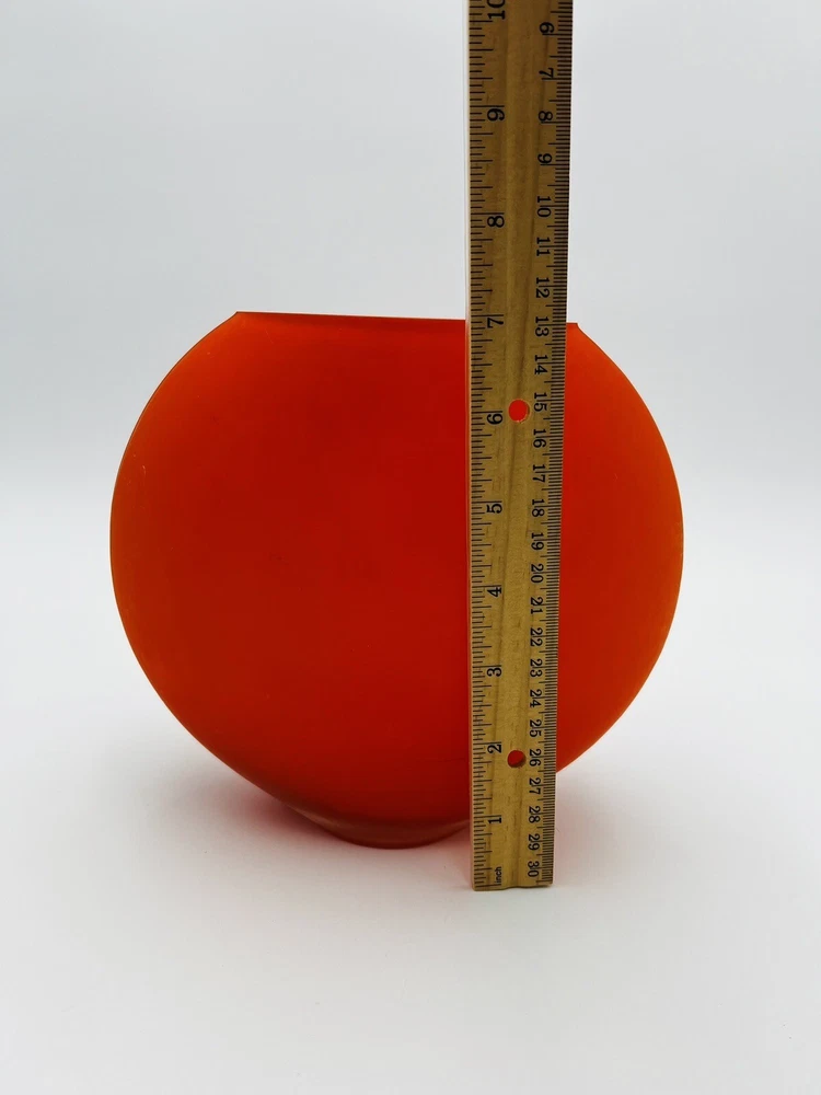 Vintage Mid Century Modern Orange Cased White Oval Vase. In good condition. Has a black mark on the outside. See photos. Measurements in photos. Will be shipped using recycled materials.