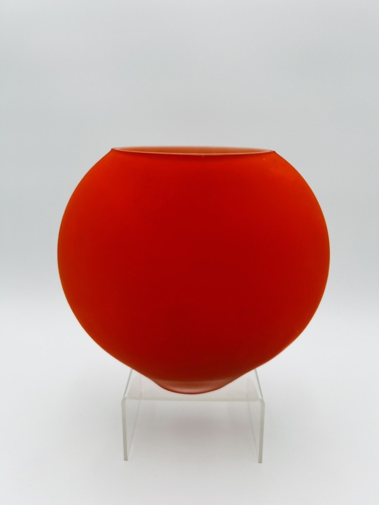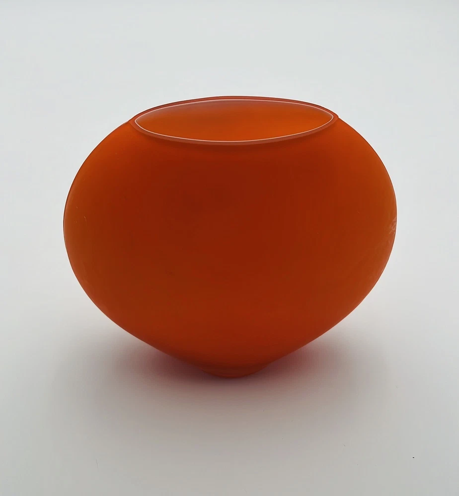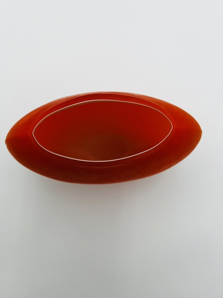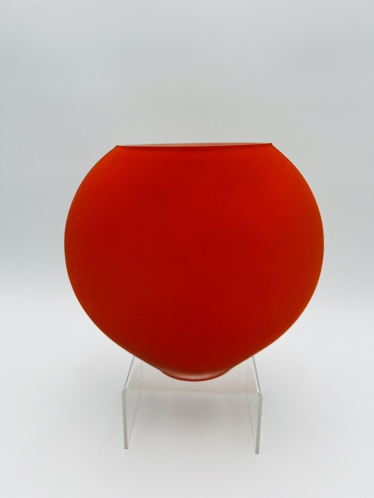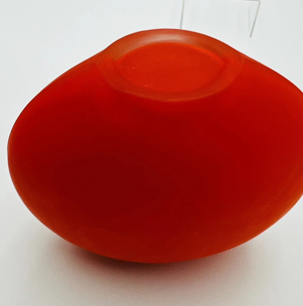 Vintage Mid Century Modern Orange Cased White Oval Vase. In good condition. Has a black mark on the outside. See photos. Measurements in photos. Will be shipped using recycled materials.