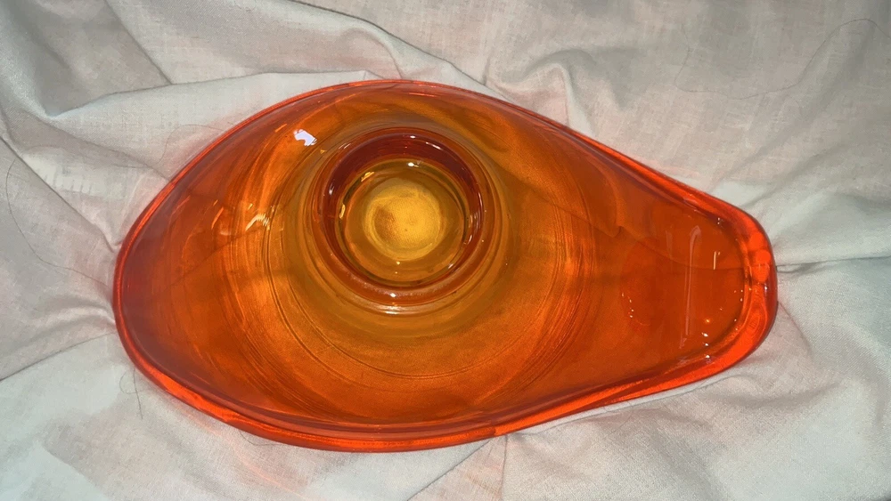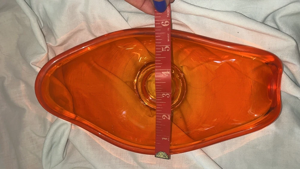 Fantastic vibrant orange dish. I can’t find a makers mark and think it is probably Viking. Pictures do not capture the vibrancy of this dish! Please see pics for measurements. Greetings! (THE FINE PRINT): Follow me on eBay for lots of unique and unusual items! Most of my items are vintage pre-loved estate finds and aren’t new; so I always try and point out any wear or flaws. Other items may be from stores that have gone out of business. I do my best to describe items accurately. If there is a challenge with your purchase, please contact me, so I can resolve it. LOCAL PICKUP IN ORANGE COUNTY, CALIFORNIA IS ALWAYS AVAILABLE. All items are shipped from a non-smoking home. Payment for auctions is due within 2 days of winning bid. Any customs or related charges for international purchases is the responsibility of the buyer. Jewelry is sent to you in a complimentary gift bag or better. Questions welcome! I am always open to genuine offers, but I’m retired and this is how I supplement my income, and I don’t consider low-balling to be a genuine offer. Thank you for looking at my auctions!