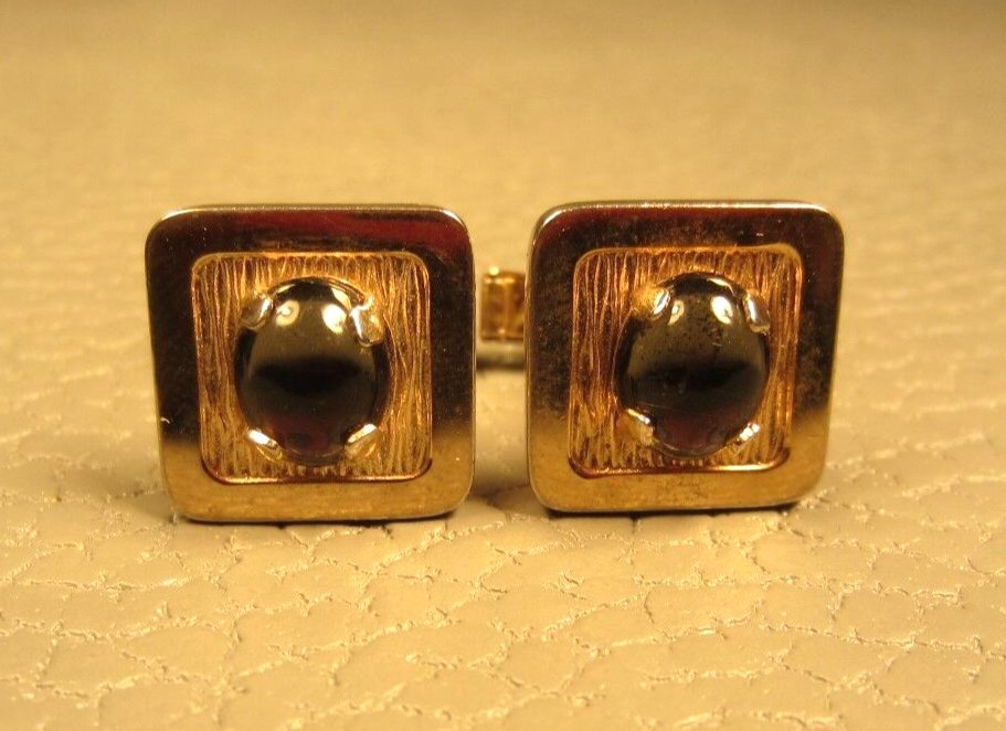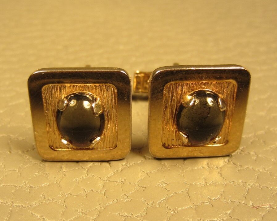 I have 1000's of cuff links for sale so please view my other listings. Vintage Mid Century Modern Prong Set Greyish Amber Colored Glass Yellow Gold Plated Cuff Links ........ in excellent condition Fr...