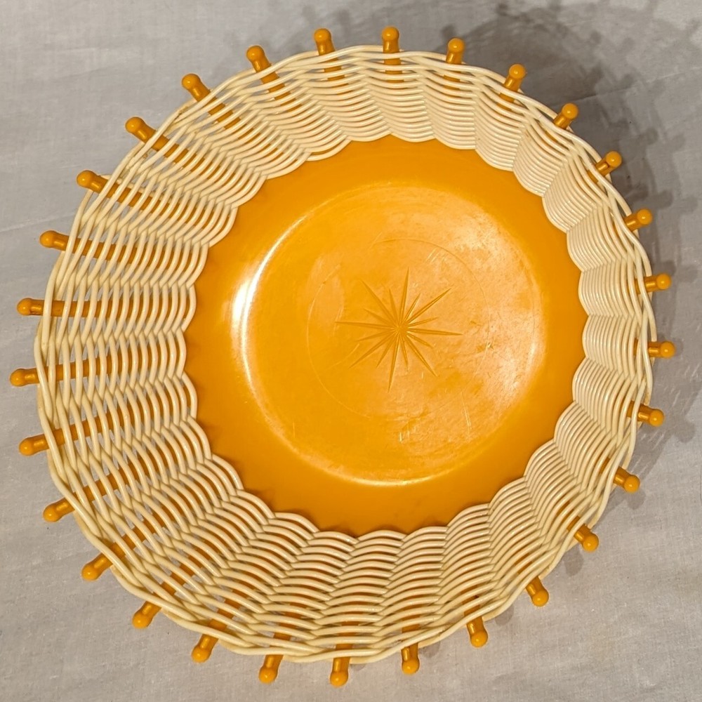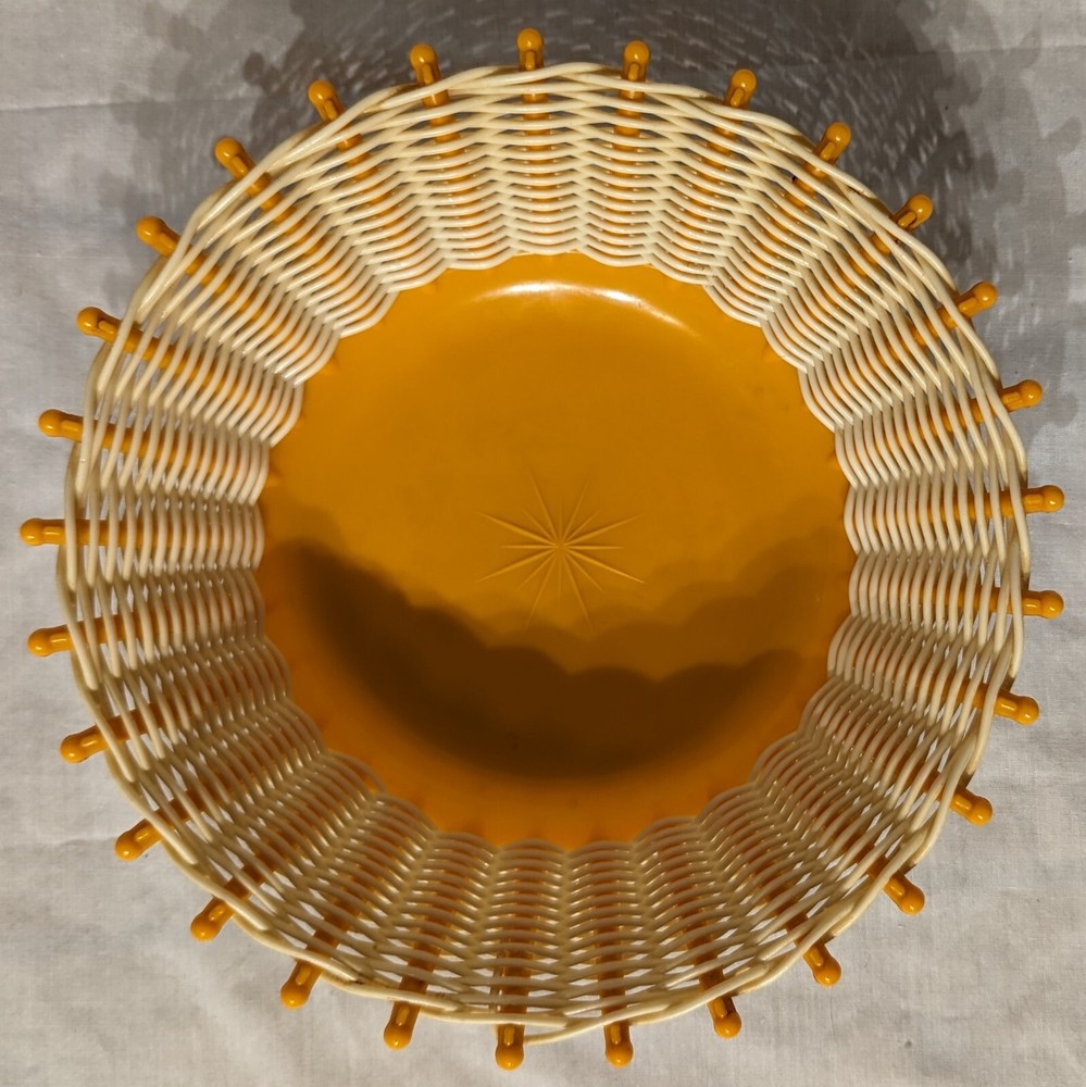 Vintage Mid Century Modern Round Plastic Orange Basket. In vintage pre-owned condition, please see photos for best description....
