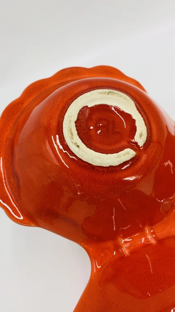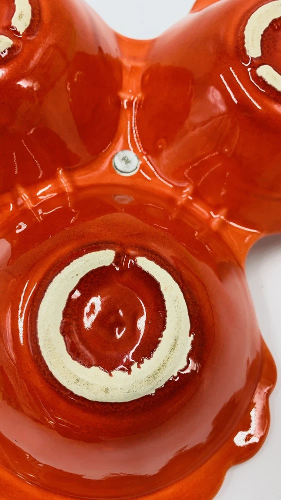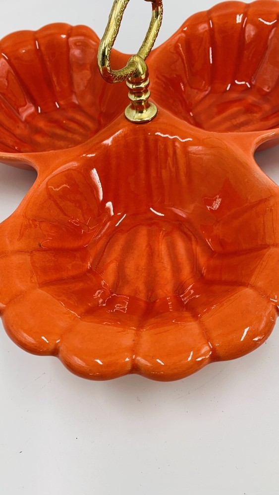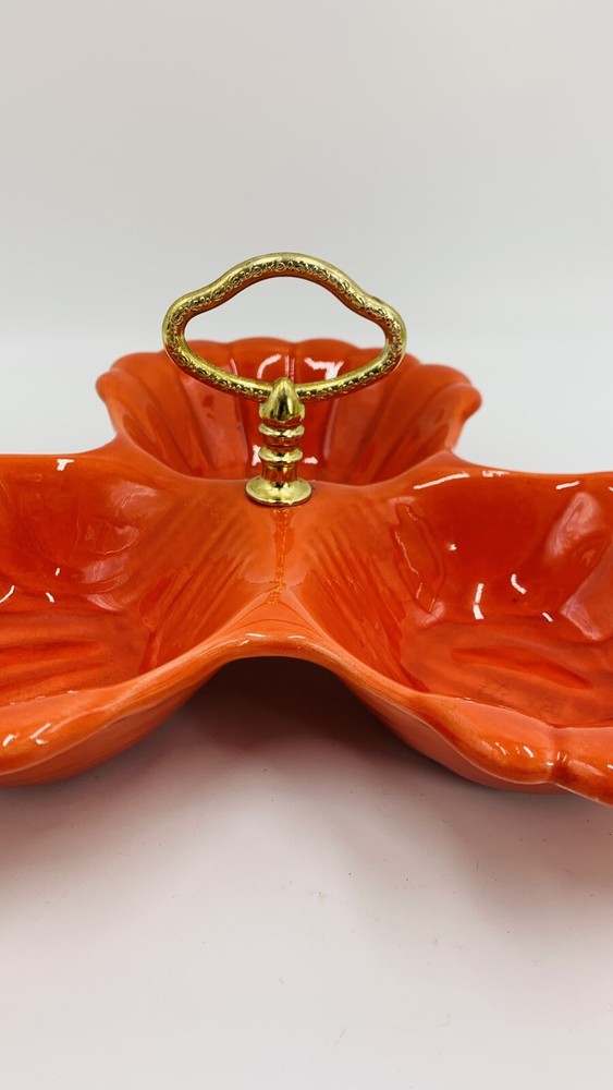 Vintage Mid Century Orange California Pottery Divided Server Nut Dish Candy
