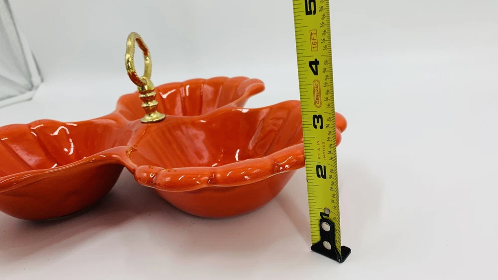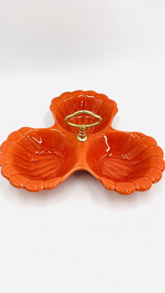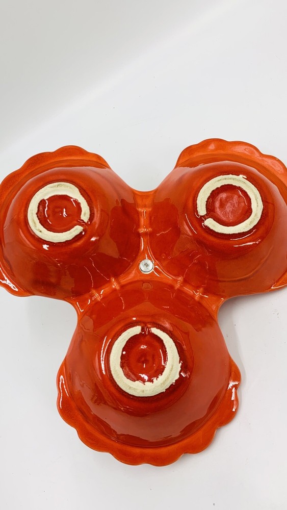 Vintage Mid Century Orange California Pottery Divided Server Nut Dish Candy...