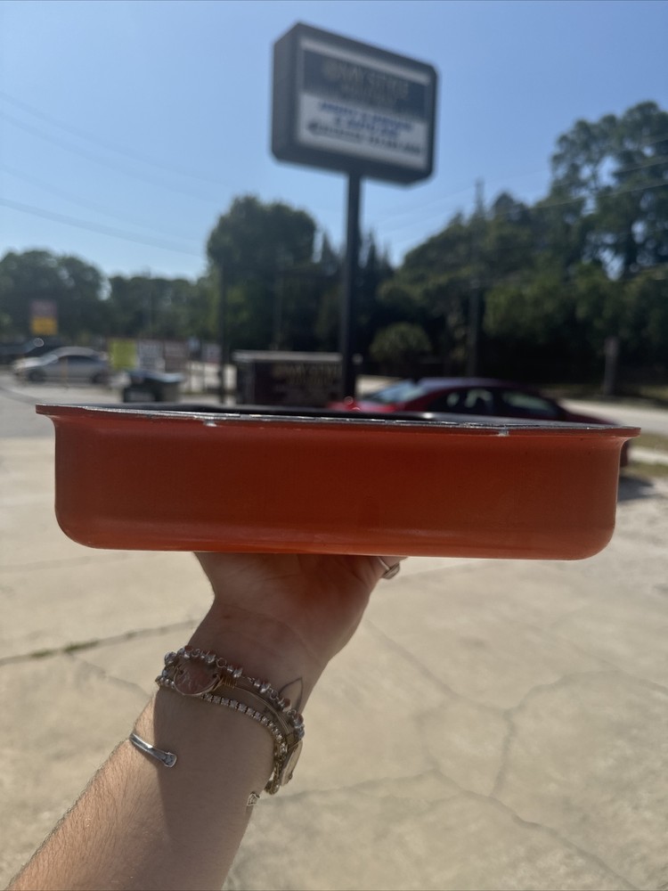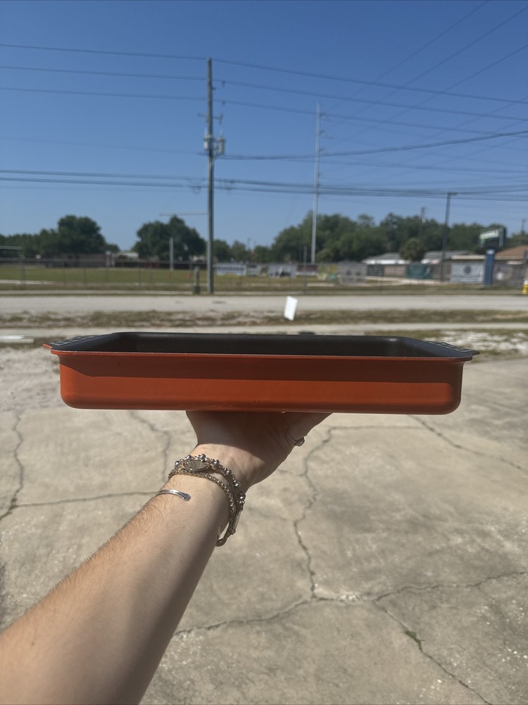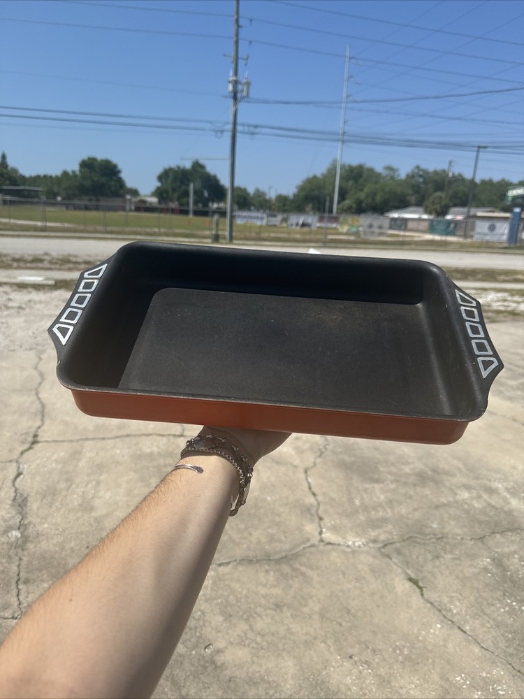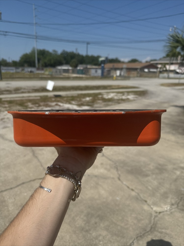 FABULOUS Atomic Retro MCM Orange/Black Casserole Lasagna Baking Dish. In excellent condition for its age. Measures - 14”x9” without the handles and 17” with the handles. Pics are part of our description. Please view the ENTIRE listing carefully as we don't offer returns. If you have any questions, please ask us BEFORE purchasing. We're happy to answer you. Located at MyStyle Boutique. Open Mon-Sat 10-5 at 11000 70th Ave. Seminole, FL 33772
