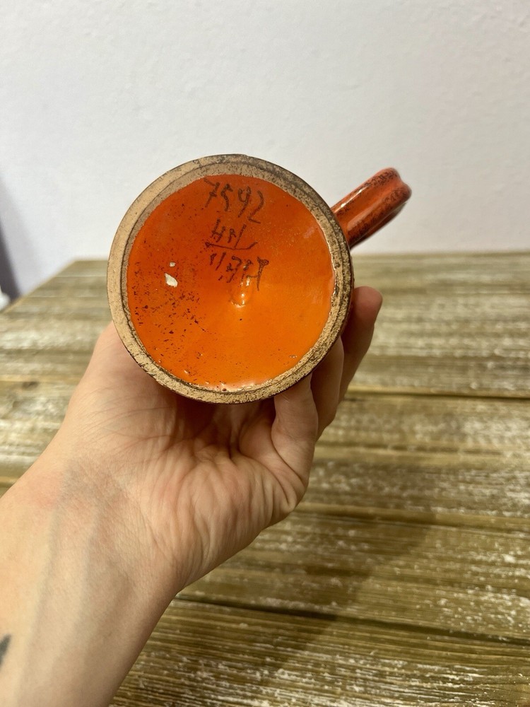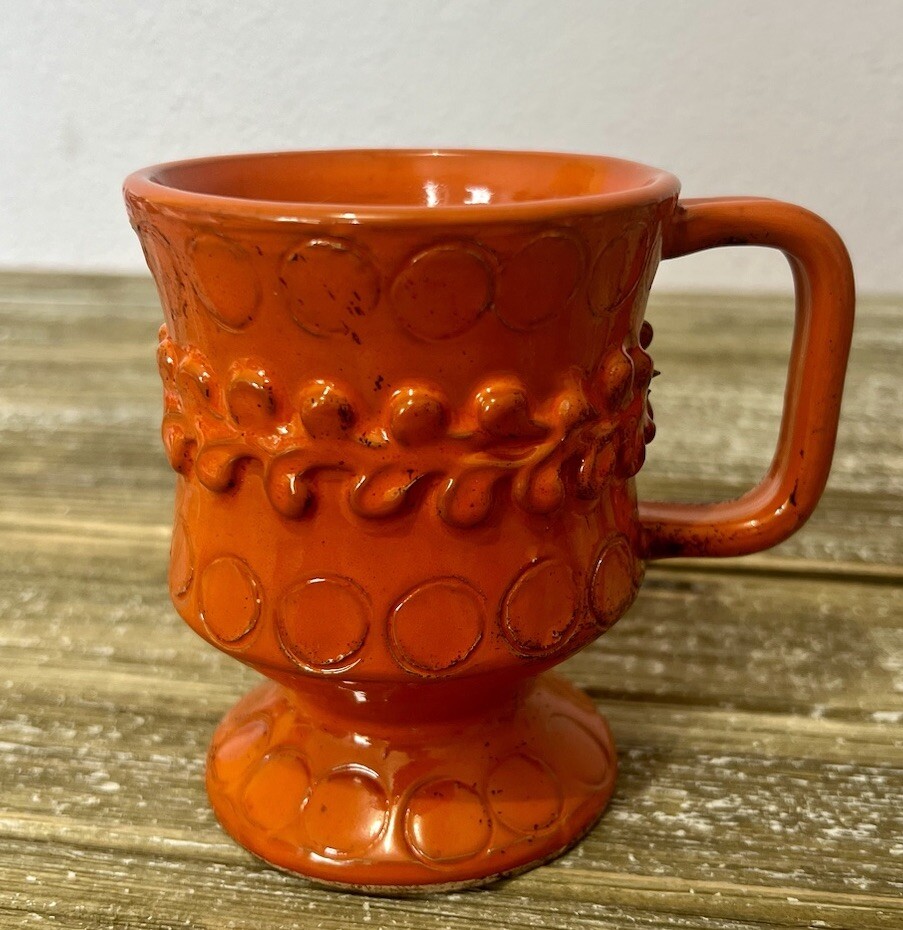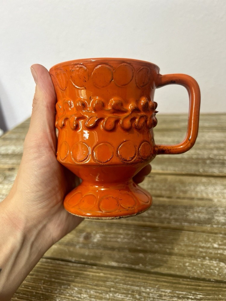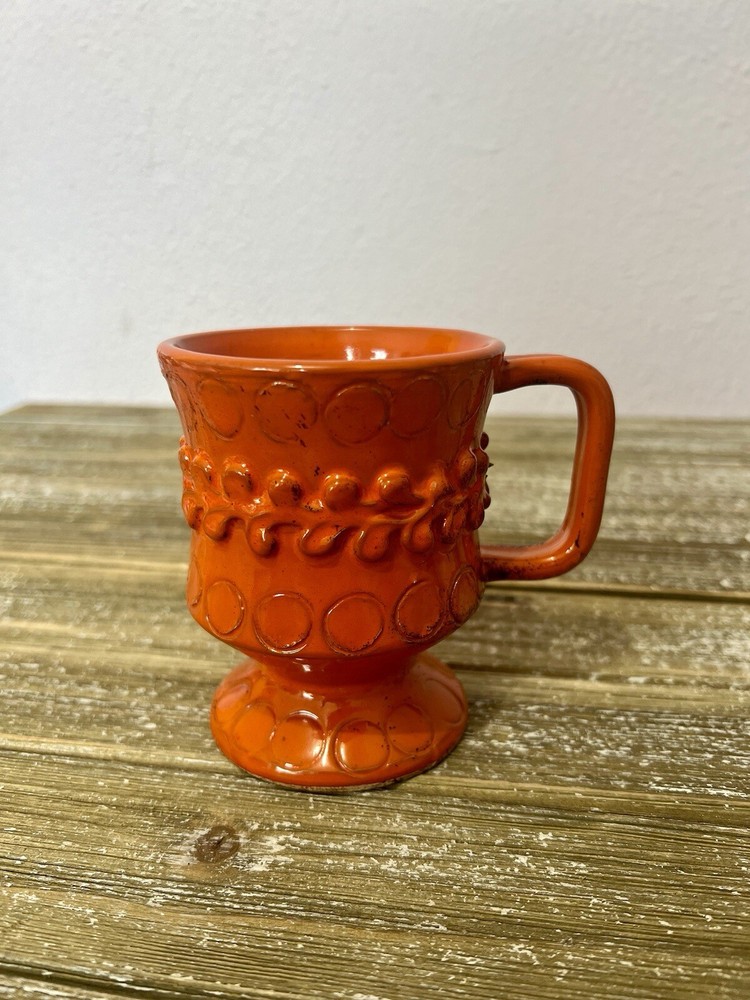 This vintage mug is a true gem! The bold orange color and unique embossed design give it so much character—perfect for adding retro charm to your morning coffee. The footed base is a cool touch, and the condition looks great for its age. Love that it's one-of-a-kind with that 70s boho vibe. The seller provides super clear photos and measurements, making it easy to visualize. If you're into quirky, statement pieces, this mug is a must-have!
