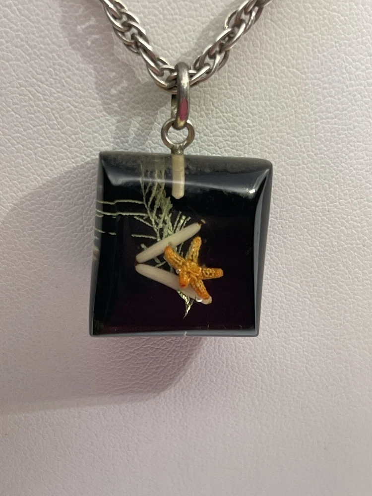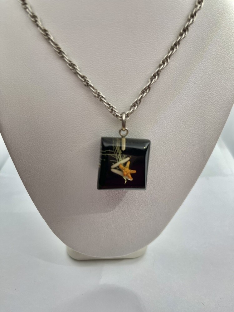 This auction is for a Vintage Mid Century Orange Star Fish Reef Design Lucite Pendant Necklace 19”……..measures approx 3/4” wide and 1” long…..Pre loved condition …..unsigned …..please view all my photos as they are part of my description….. I have other jewelry on ebay and I happily combine shipping... Questions - please email me before auction ends. Winning bidder to pay shipping and handling, item will be mailed in a first class padded.... Payment is due within 24 hours of auctions end…. THESE TERMS ARE NOT NEGOTIABLE AFTER AUCTION ENDS..... International Buyers – Please Note: * Import duties, taxes and charges are not included in the item price or shipping charges. These charges are the buyer's responsibility. * Please check with your country's customs office to determine what these additional costs will be prior to bidding/buying. * These charges are normally collected by the delivering freight (shipping) company or when you pick the item up – do not confuse them for additional shipping charges. * We do not mark merchandise values below value or mark items as "gifts" - US and International government regulations prohibit such behavior. OTHER IMPORTANT INFORMATION Most of the items I offer are bought on the secondary market and therefore I do not know the history behind them. I strive to purchase and sell only quality items and once they come to my home they are stored in a clean, smoke-free environment. I will do my best to describe each item, pointing out any missing items, minor flaws, etc. however, being only human - there may be an occasion when something has been overlooked. It is never my intention to deliberately withhold information or misrepresent the item in anyway. Please keep in mind these items have been previously owned and are not new. Please review the description and the pictures carefully and if I can answer any questions or provide you with additional photos please do not hesitate to e-mail me before bidding.