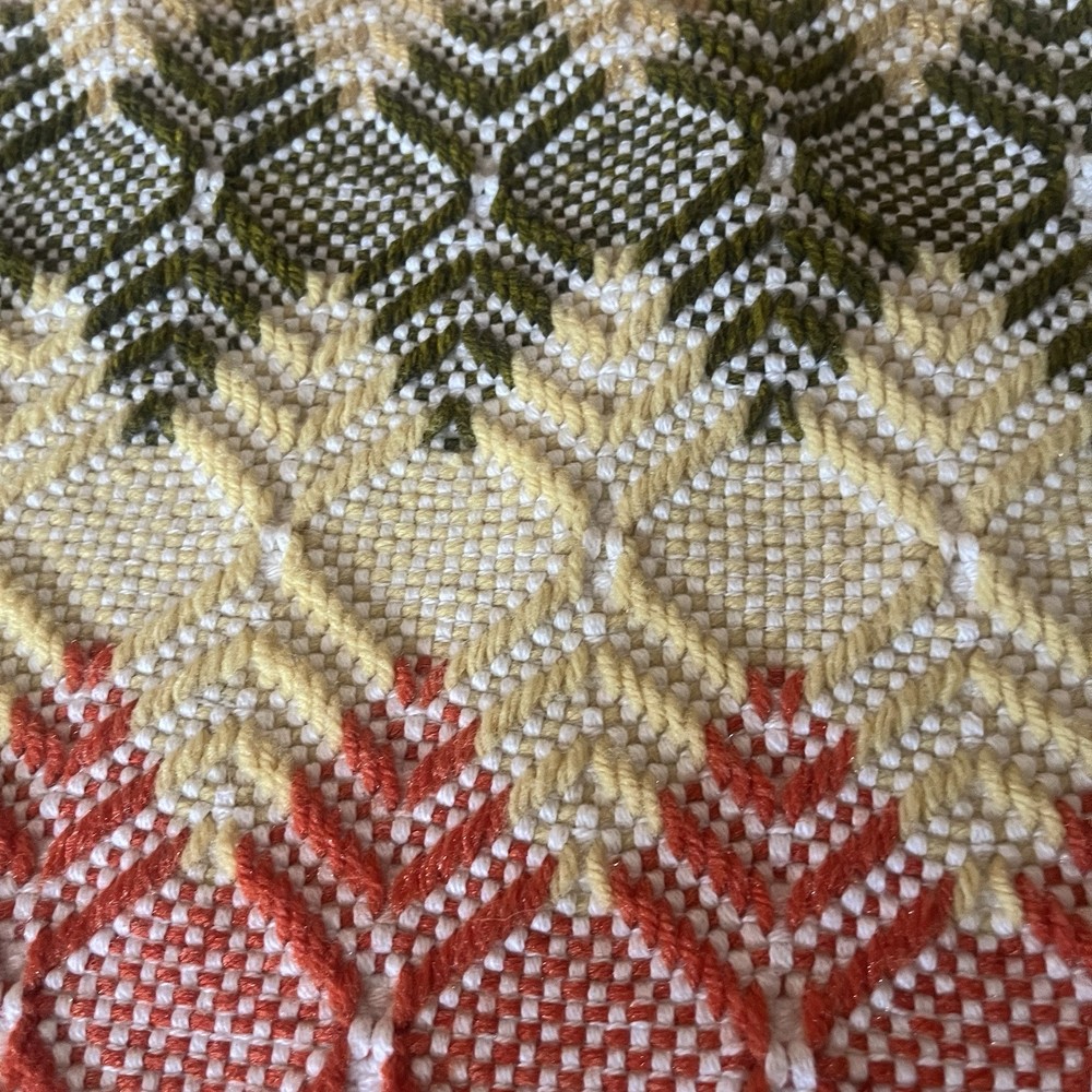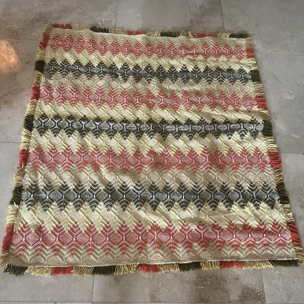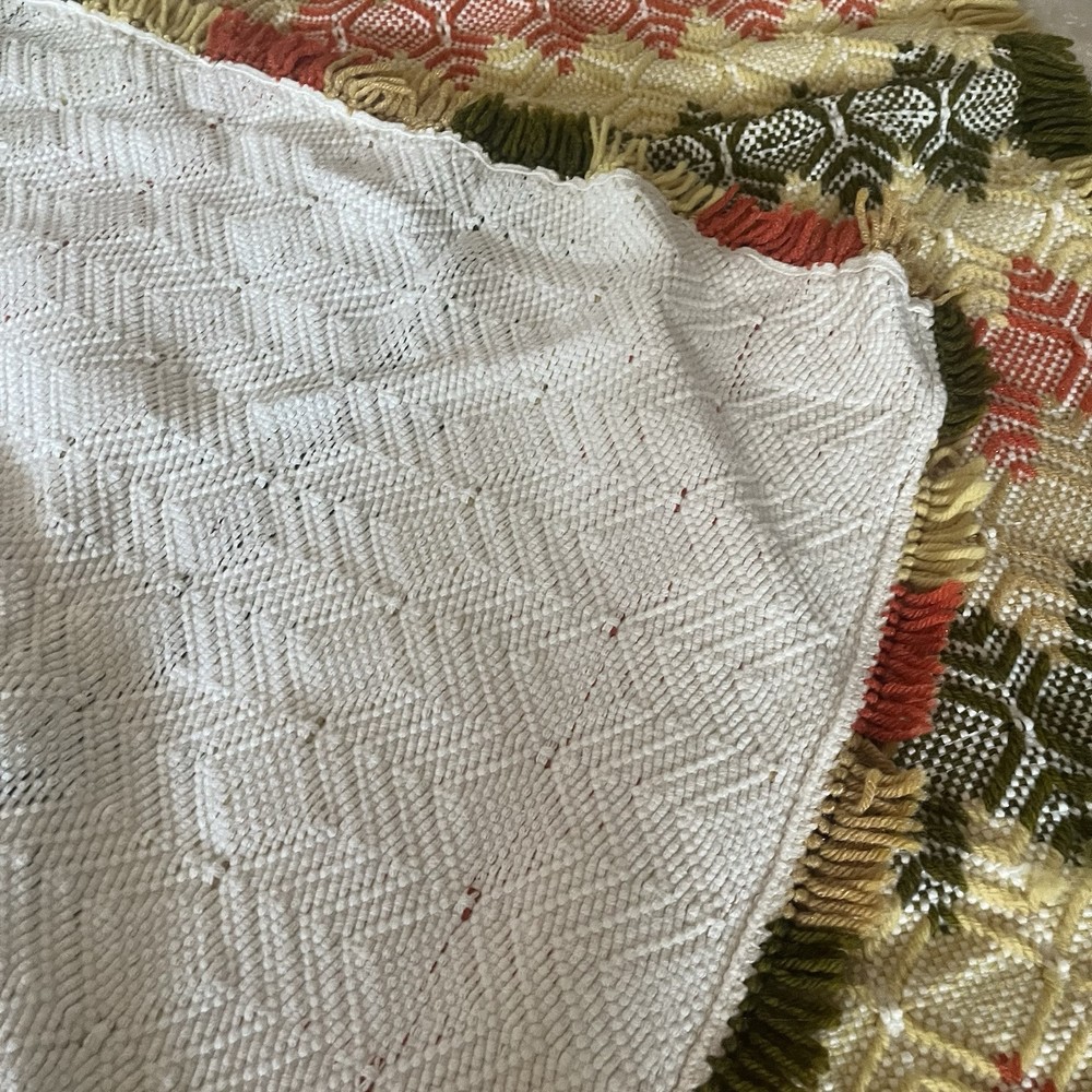 Vintage Mid Century Orange, Yellow Avocado Pattern Throw Blanket Beautiful pattern tassel throw blanket in great condition Beautiful colors 44 x 49” Smoke free pet free...