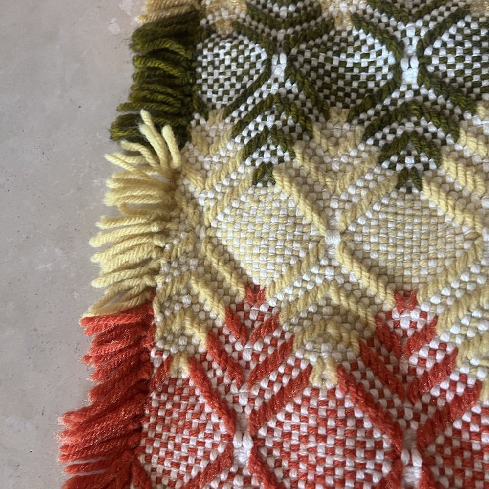 Vintage Mid Century Orange, Yellow Avocado Pattern Throw Blanket Beautiful pattern tassel throw blanket in great condition Beautiful colors 44 x 49” Smoke free pet free