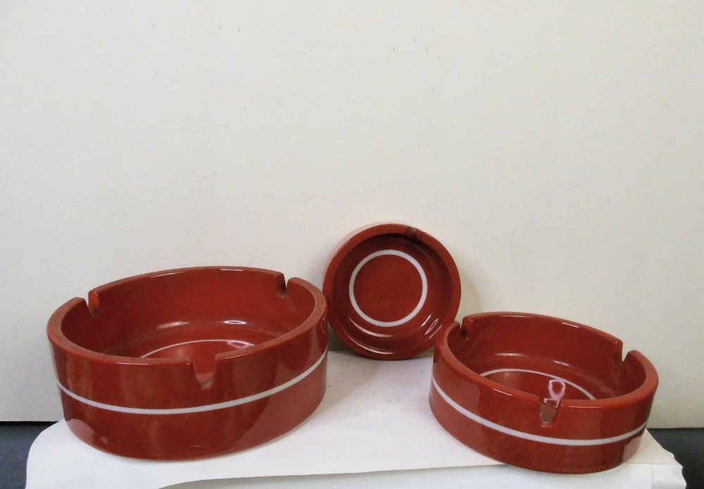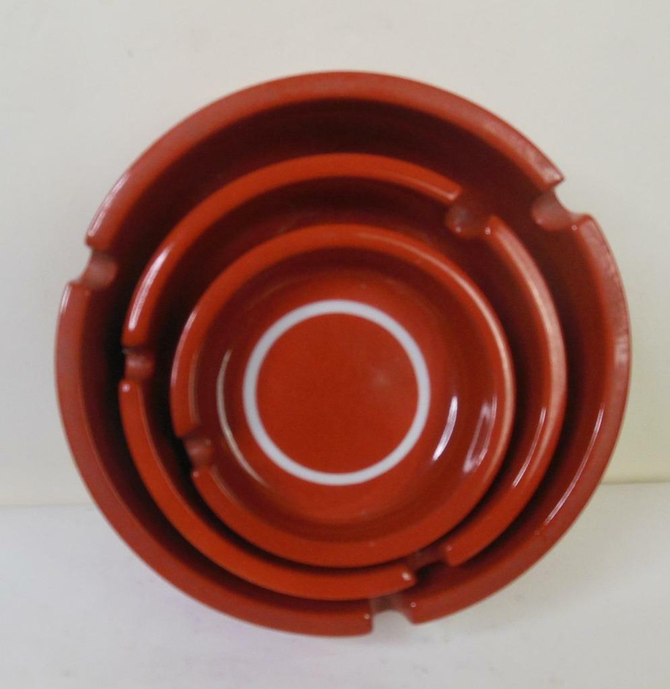 This listing is for a set of 3 brick red ashtrays. Nesting. The largest is 5 x 2 inches. Perfect condition. They look unused. Happy to combine the shipping if you find more than one treasure. Preloved...but this set of 3 ashtrays looks perfect to me. Let me know if you have any questions...or if you want additional photos. Vintage Mid Century Set of 3 Nesting Ceramic Ashtrays Red/Orange Japan Vintage Mid Century Set of 3 Nesting Ceramic Ashtrays Red/Orange Japan Click images to enlarge Description This listing is for a set of 3 brick red ashtrays. Nesting. The largest is 5 x 2 inches. Perfect condition. They look unused. Nice and heavy. Happy to combine the shipping if you find more than one treasure. Preloved...but this set of 3 ashtrays looks perfect to me. Let me know if you have any questions...or if you want additional photos. . Payment I love Paypal. I prefer to ship via priority mail...or first class. Free tracking number for domestic shipping. I wrap item in the way that I think is the safest, but, I can't be responsible for the post office. I am always happy to ship internationally... Most of my items are vintage. Any vintage item should be considered used and should be expected to have some level of normal wear from age or storage. I ship from a non smoking house, but I don't know the story of these items before I get them. Some people may notice odors that I don't, so I can't say that they are odor free, smoke free, or pet free. If there is a problem, or you are unhappy with any of my items, please get in touch with me. I really don't like to have unhappy customers and will try my best to make your shopping experience with me "just right." I love to ship multiples. When you win more than one item, I charge you the highest freight and between 1 and 3 dollars for all the additional items within reason. Have a good time shopping with me and please add Gollitexas to your favorites list." Get images that make Supersized seem small. Showcase your items with Auctiva's Listing Templates! THE simple solution for eBay sellers.