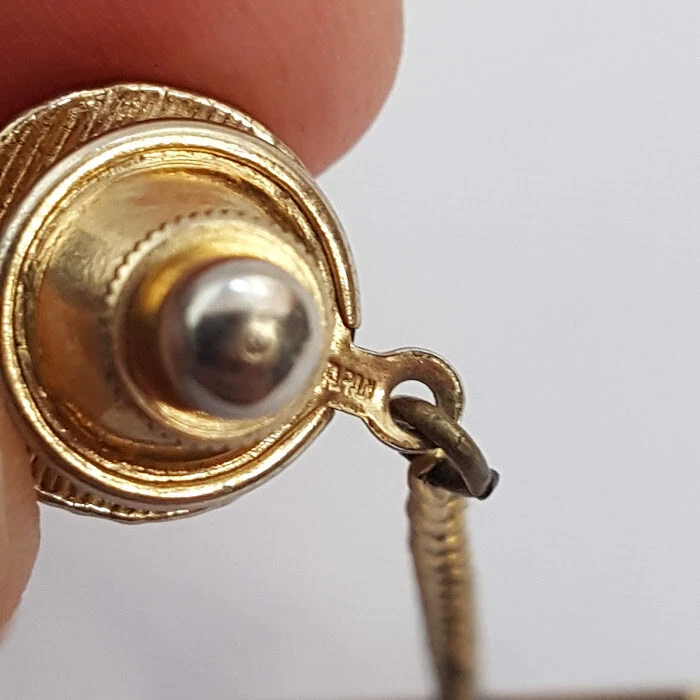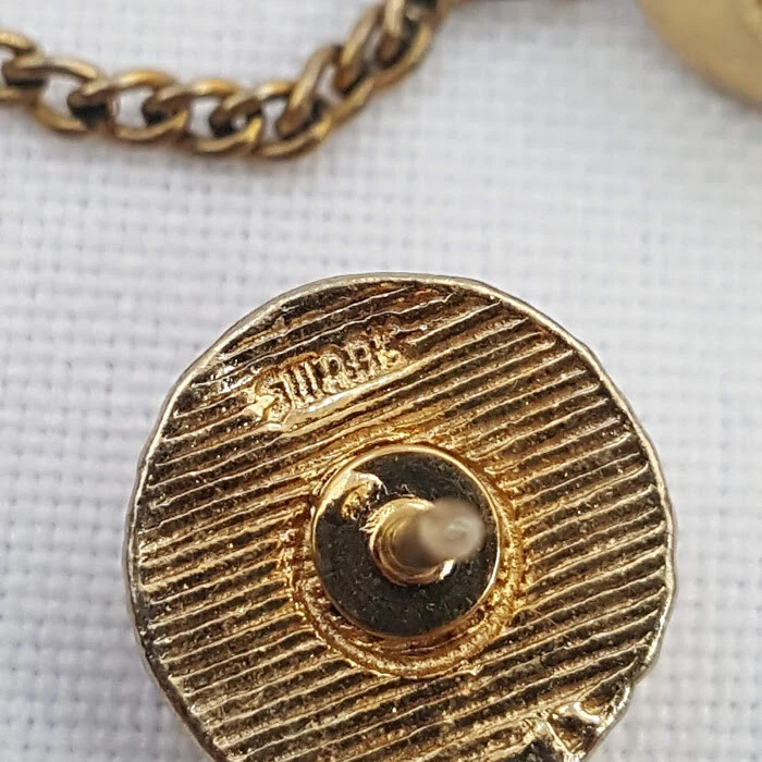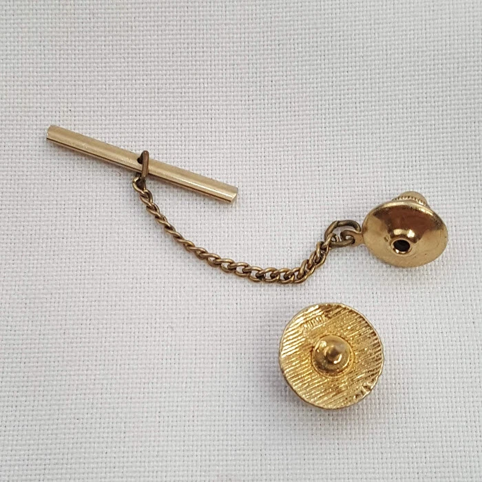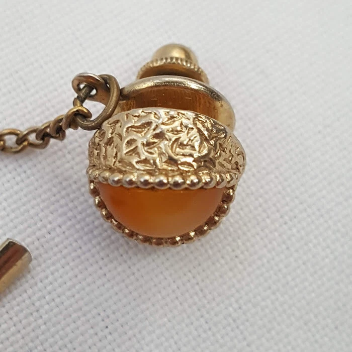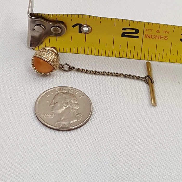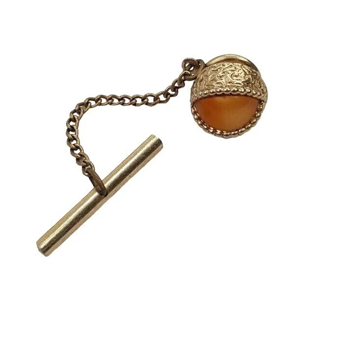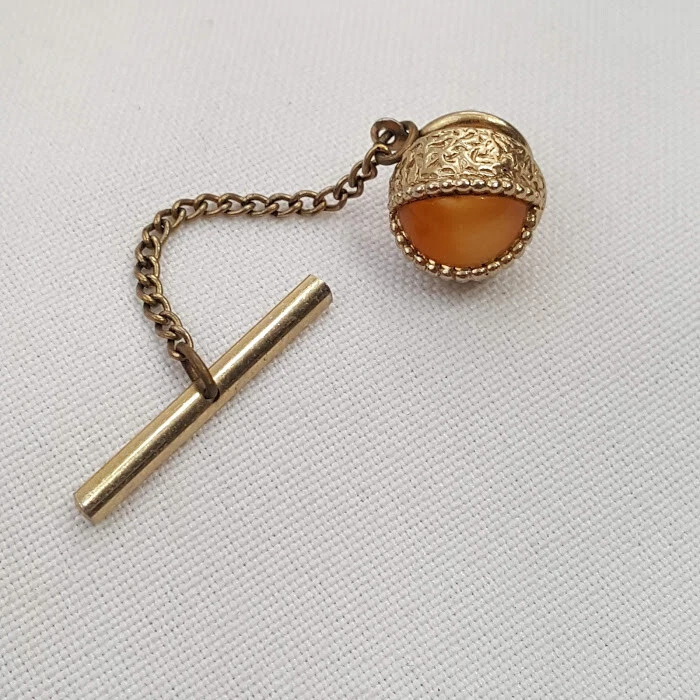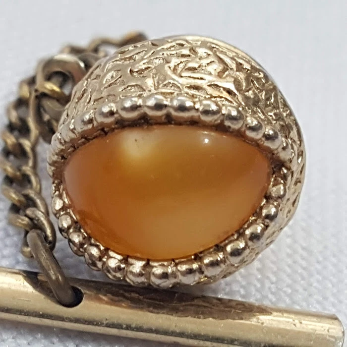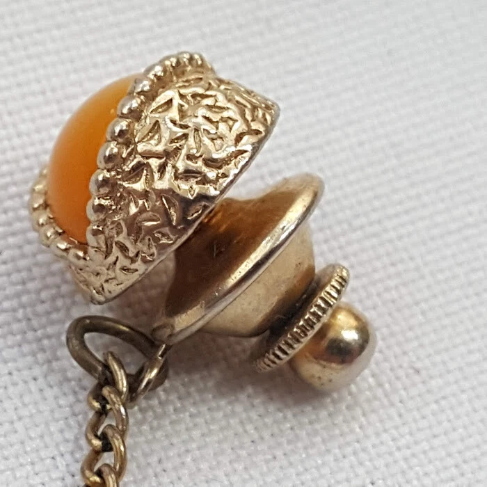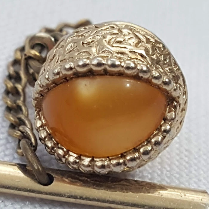 Vtg Mid Century Tie Tack Pin W/ Chain Oracle Eye Shaped Round Yellow Stone...