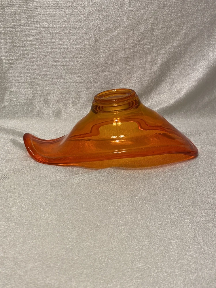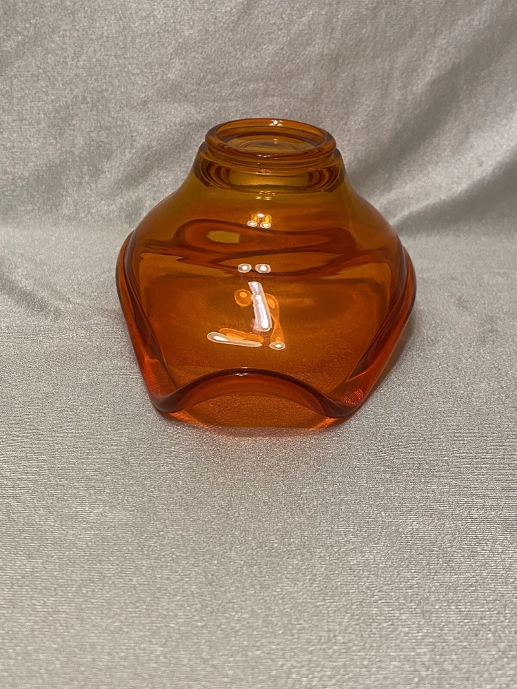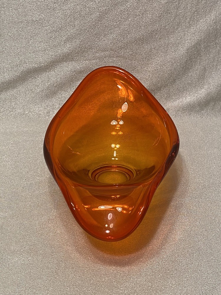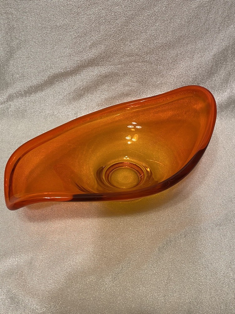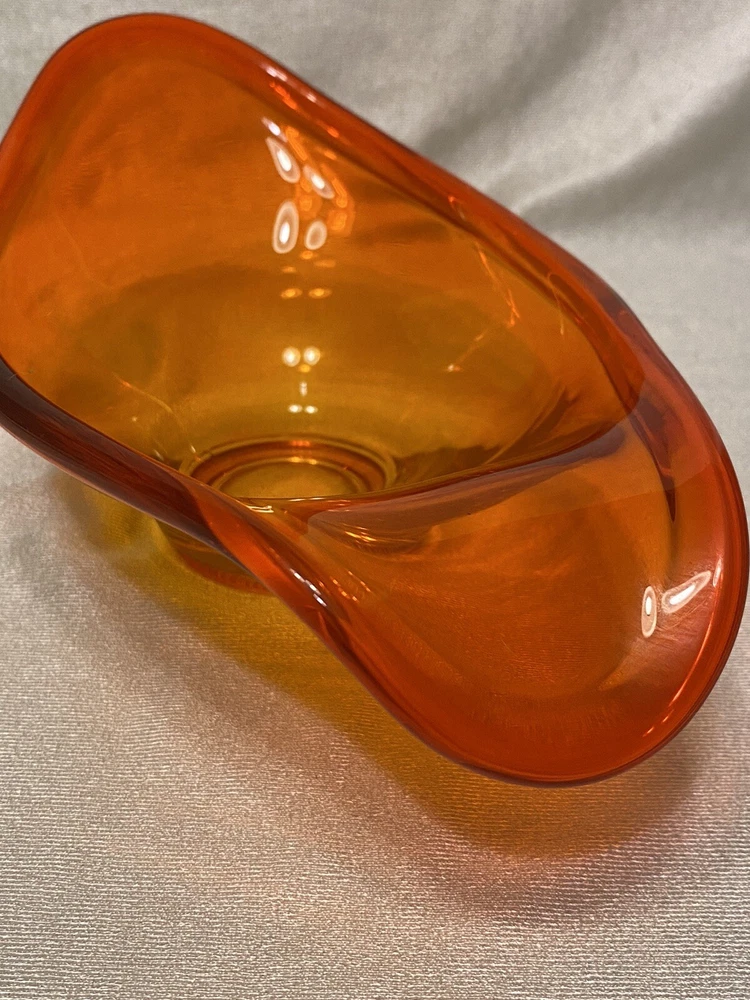 Vintage Mid Century Viking Glass Orange Abstract Oblong Pedestal Bowl. Very nice condition. Measures approximately 9.5” x 5.25” x 3”....