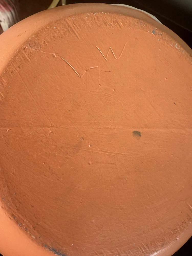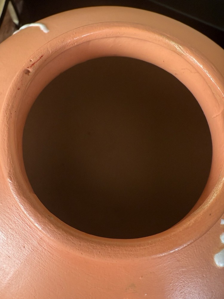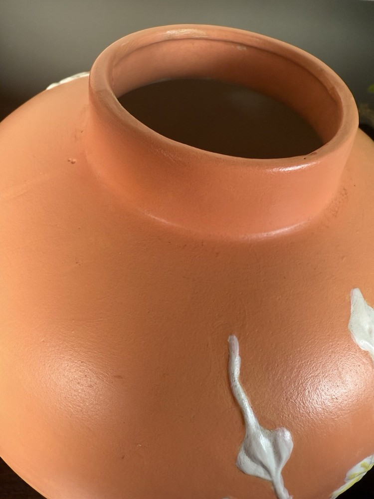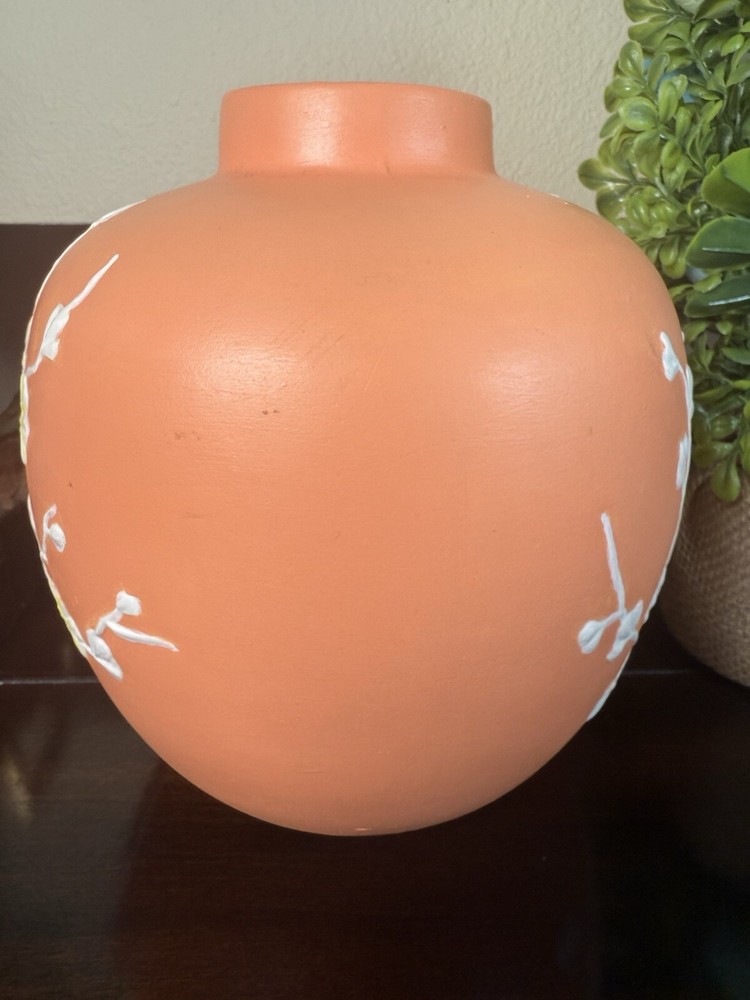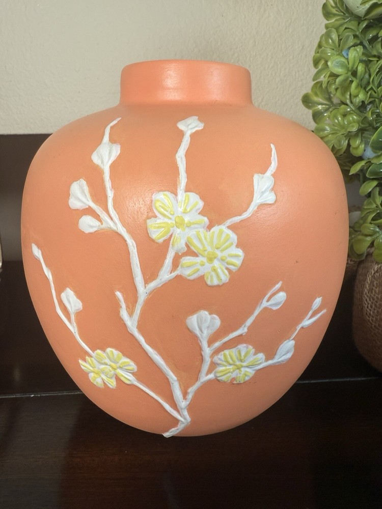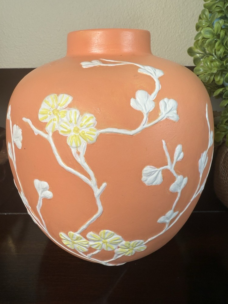 Vintage ( Mid century?)Orange Cherry Blossom Pottery Vase 8.25 inch by 7.5 inch
