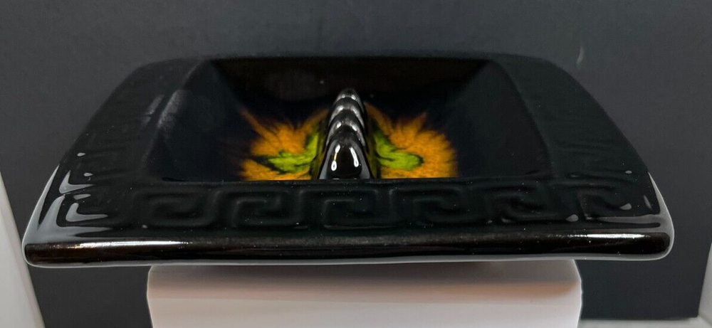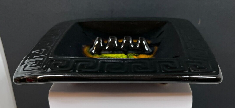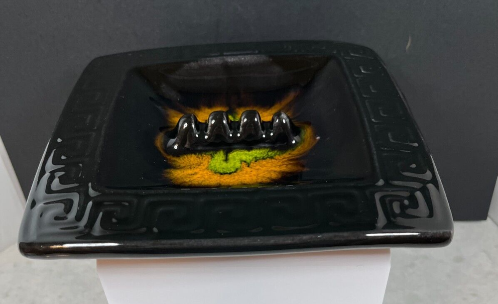 The Vintage Mid-Century Aztec Design Orange & Green Swirl Art Pottery Table Ashtray is in Great Condition. NOTE: There is residue on bottom of ashtray from price tag. Nice Mid-Century Aztec Design Art Pottery Square Ashtray! Amazing Addition to Your Vintage Ashtray Collection! Vintage Mid-Century Aztec Design Orange & Green Swirl Table Ashtray Measurement: 6.6 " You receive the Vintage Mid-Century Aztec Design Orange & Green Swirl Art Pottery Table Ashtray in the Pictures Above . Please be sure to check out the stores other items! New items listed on a daily basis! If you have any questions please feel free to email any time. Items will be shipped the next business day after payment has been made. Thanks for Shopping at Yobles & Please Come Back Soon! S C-30 Comes from a smoke-free and pet-free home .