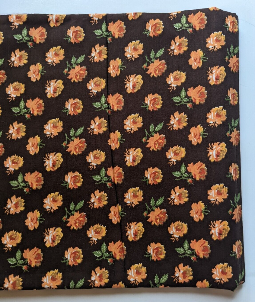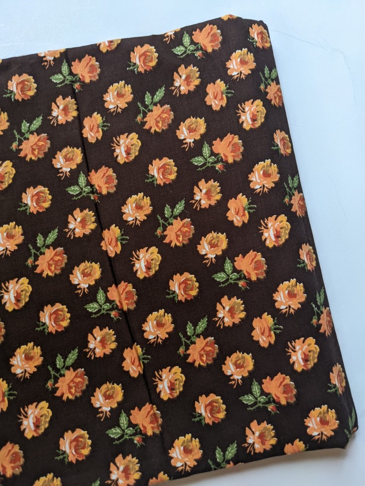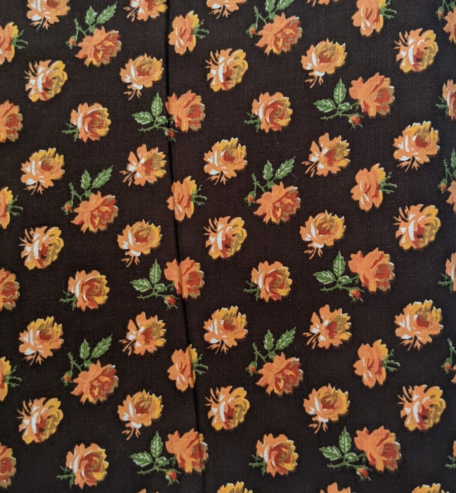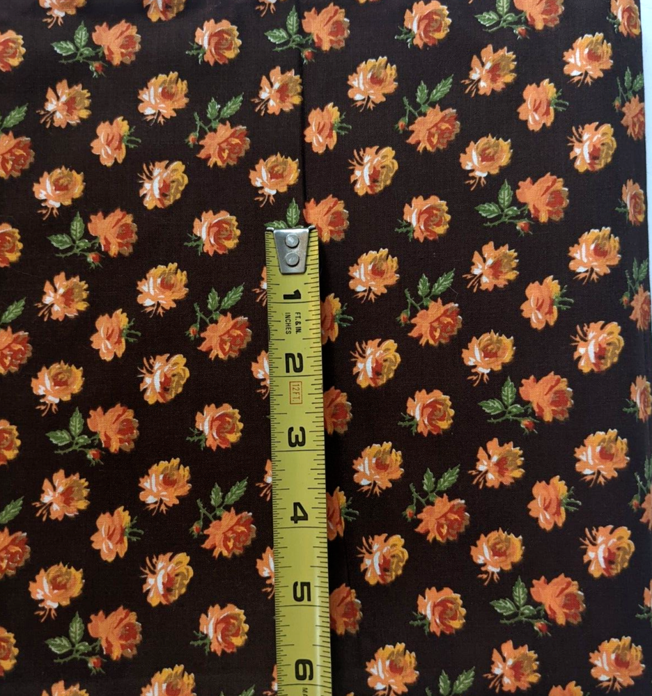 A lovely vintage mid-century cotton floral fabric featuring a small-medium scale orange roses print on a brown background. Fabric measures 44" wide by 2 yards long. Selvedge is unmarked. Excellent vintage condition with no flaws to note. Please see photos for details and ask with any questions. Thank you!