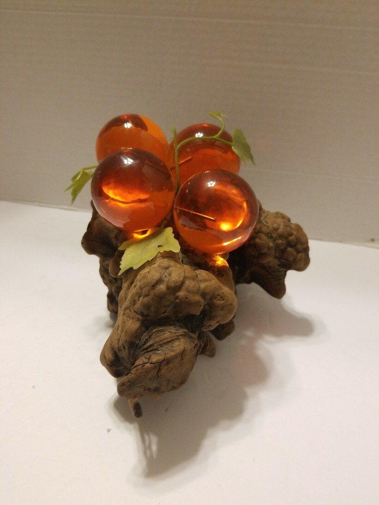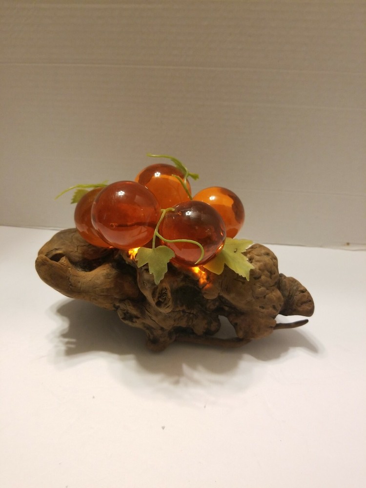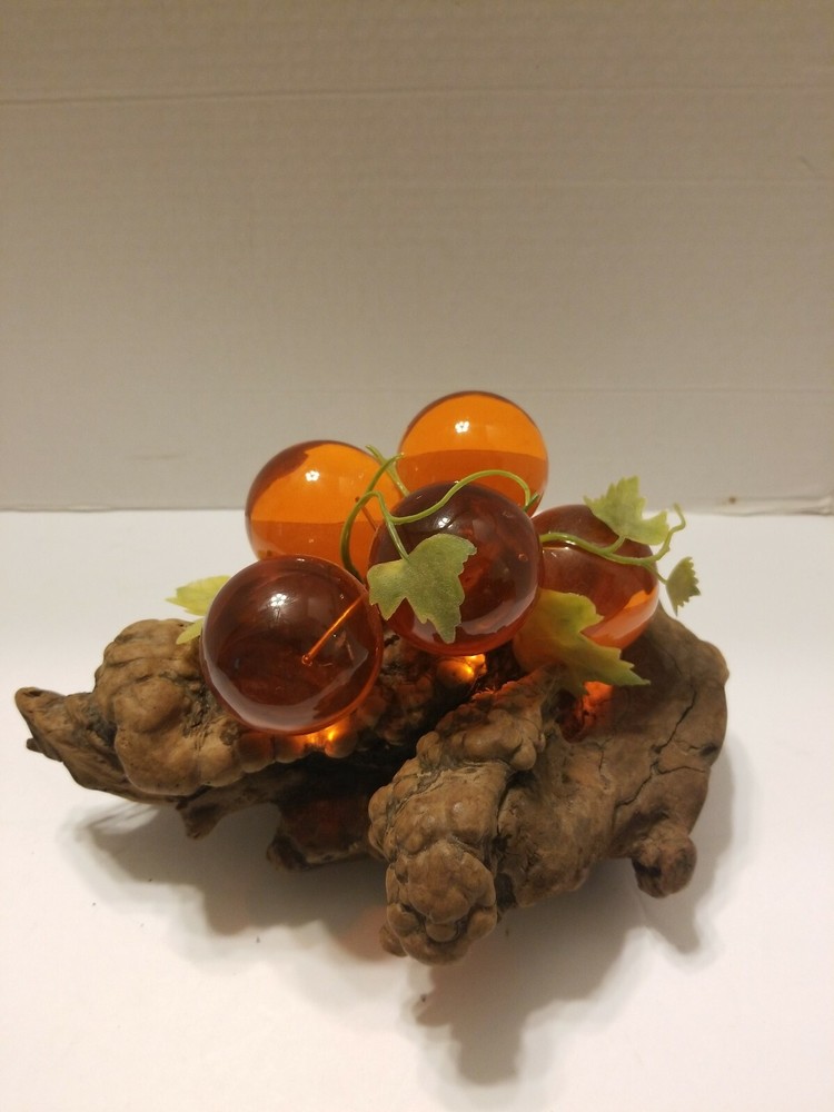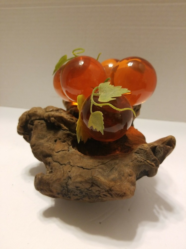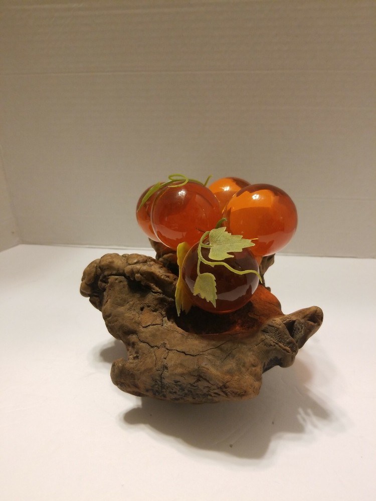 Vintage Mid-Century Lucite Acrylic Grapes On Driftwood Orange. Condition is Used. Shipped with USPS Priority Mail.