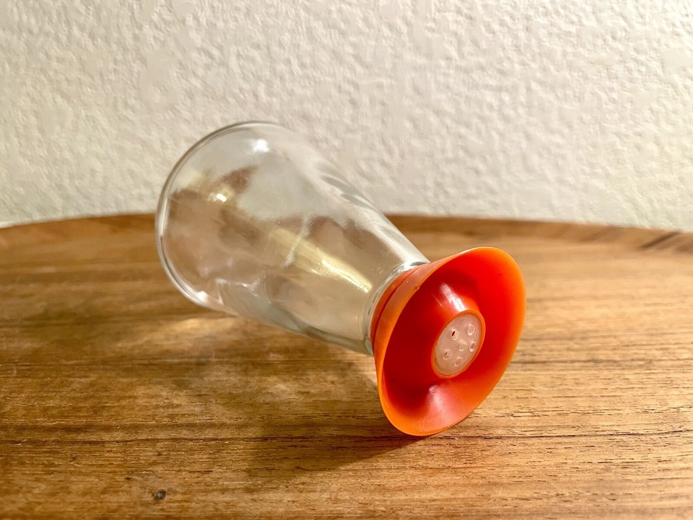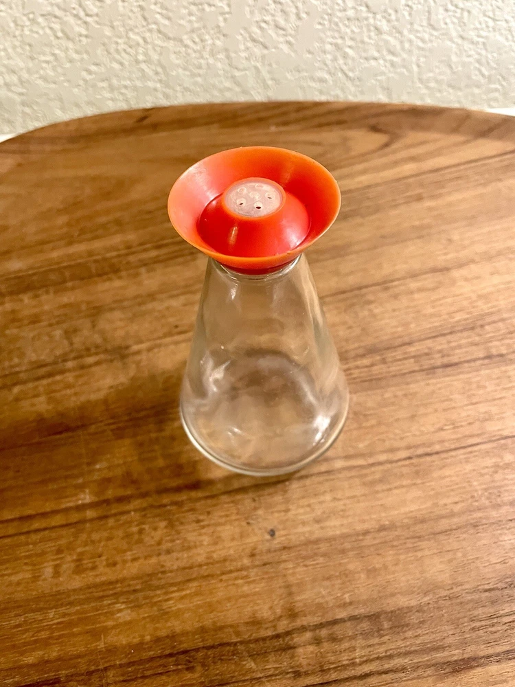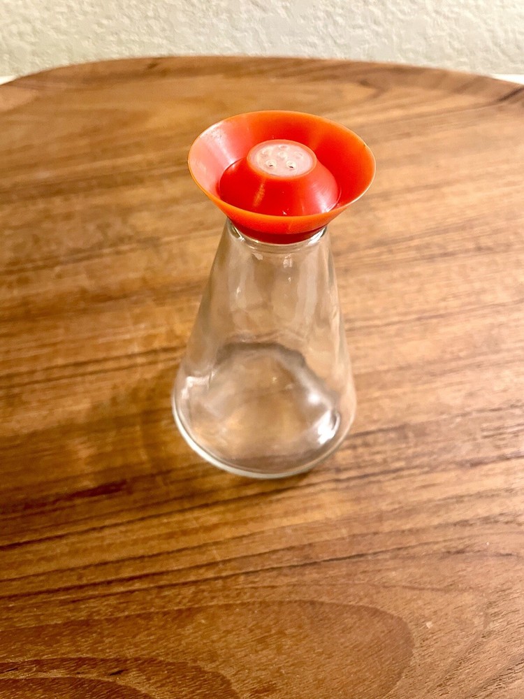 So cool! MCM Beaker shaped Salts & Spices Shaker. Excellent Condition! Measures 4.25” tall, 2.65” wide bottom, 0.75” rim & 1.75” flared topper. Holds 1/2 Cup Great retro Brady Burch kitchen accessory. Please let me know if you have any additional questions. Jae