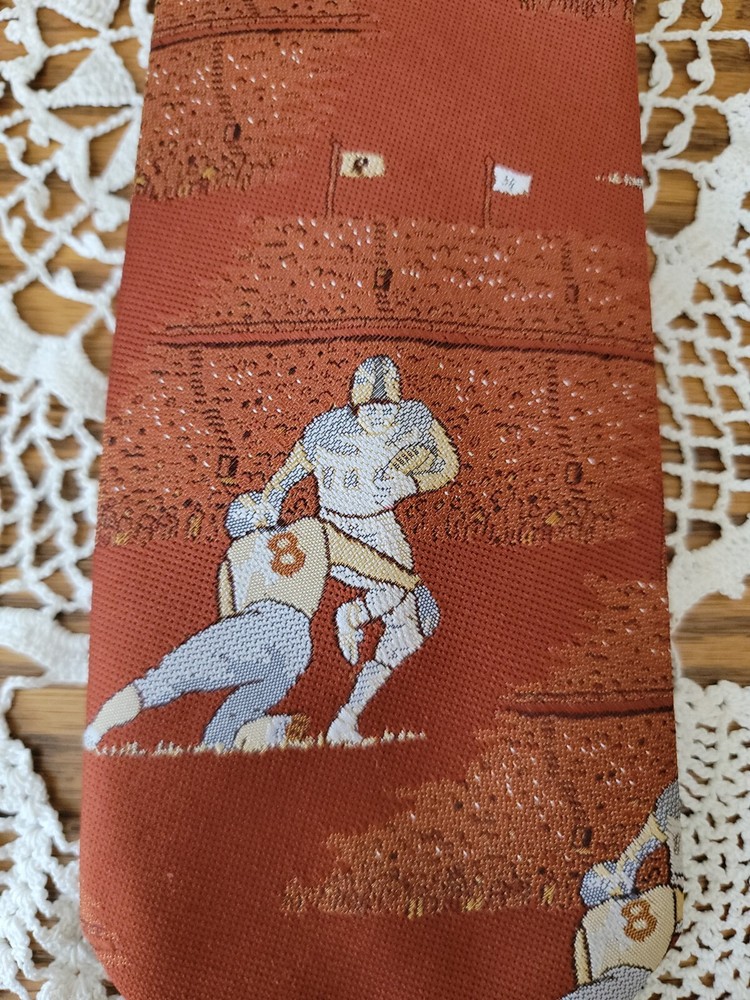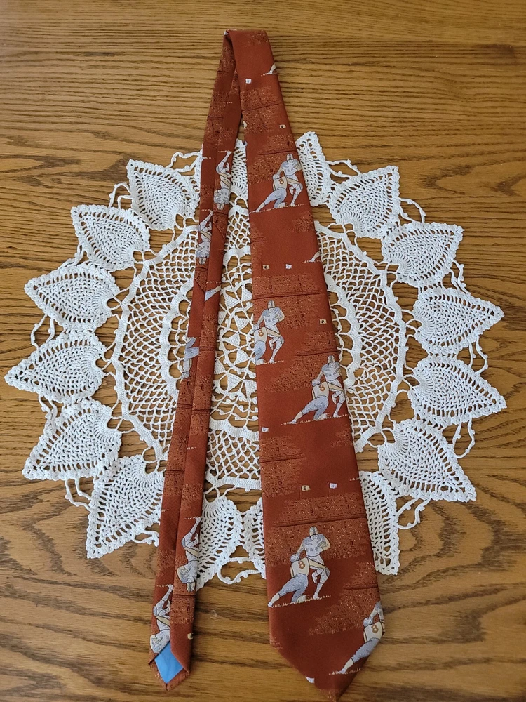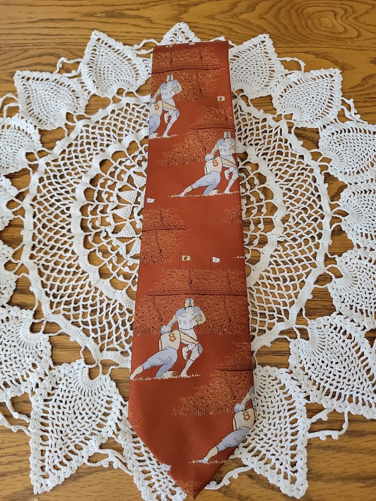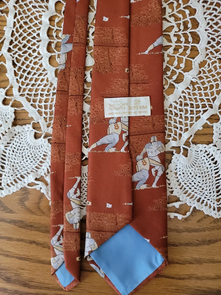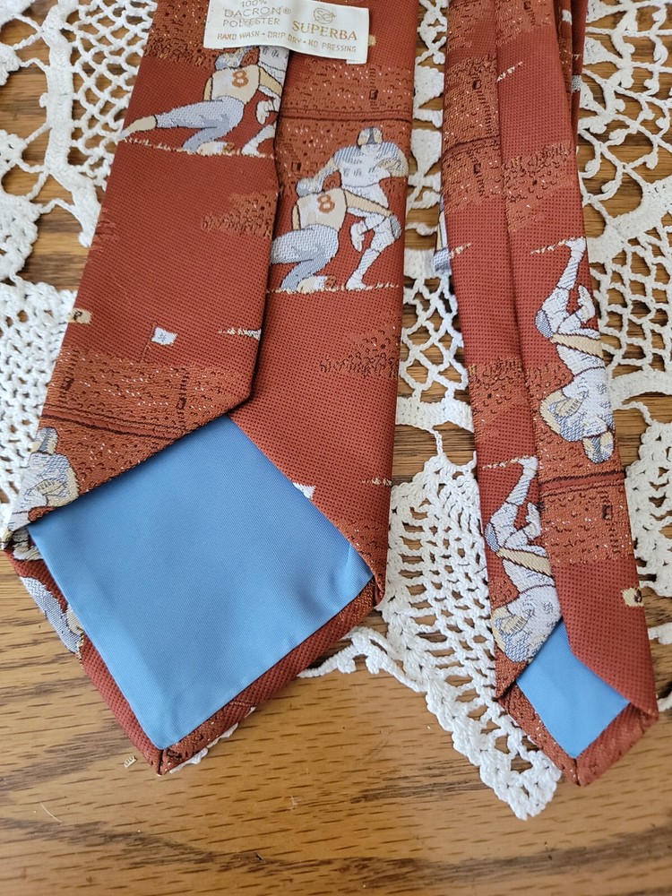 Vintage Mid-Century Superba Football Tie Polyester Player #8. Size: 57" long × 4" at widest point Antique auction find. Estimated age mid-century or newer. Great Tie for the Pittsburgh steelers Kenny Pickett fan. Made by Superba and is 100% Bacron Polyester. Cleaning instructions are on label. Item is vintage and has some wearing from age and use. No holes or stains. Some fading of original color. Please see pictures for overall condition and feel free to ask questions. Thank you for checking out an item from my store! I love treasure hunting and finding new homes for all the unique items I find. I do my best to describe all items accurately. I will always mention any visible flaws, damage or unusual characteristics. Please look at pictures carefully as they serve as part of my description. Please feel free to ask questions and I will get back to you as soon as possible. I do combine shipping on most items except those going through eBay's global shipping program. Please note some items are not possible to do combined shipping because of size or content. I ship items out Monday thru Friday. Please make payment within three days after the end of auction. If for any reason you are unsatisfied with your puchase please feel free to contact me. Please check out my other items!