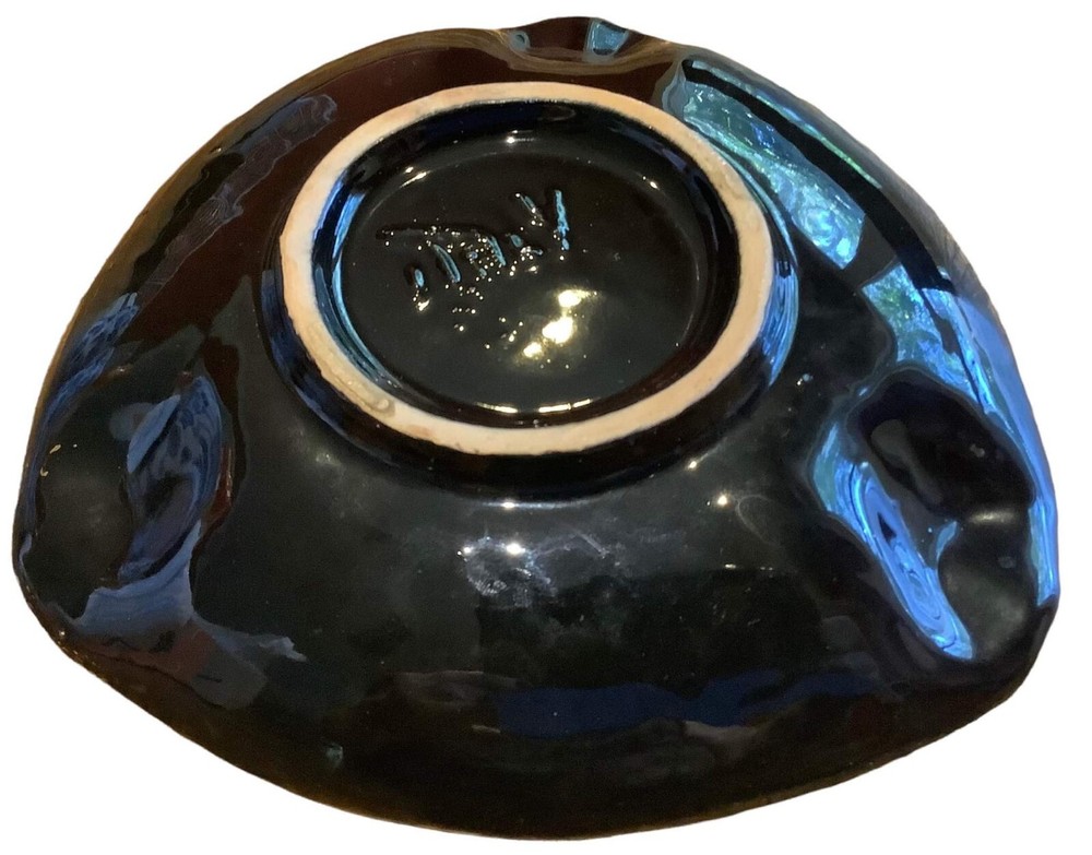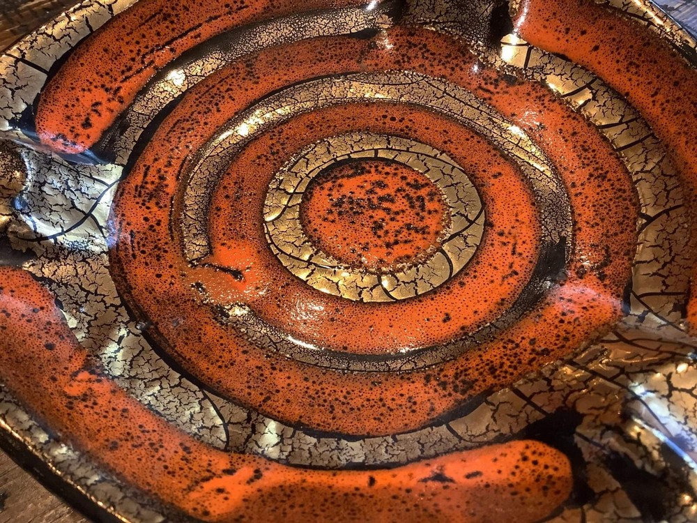 Vintage Mid-century Orange And Gold Ashtray Hollywood Glam 7.5" At Widest Point. Stunning ashtray in perfect condition, no chips or cracks, fantastic glaze! 3 cigarette divets. See all pics....