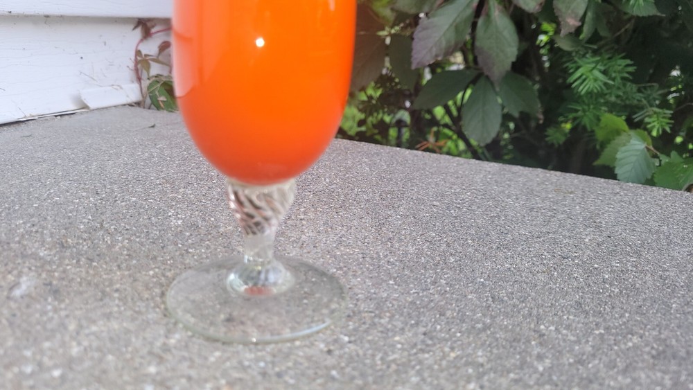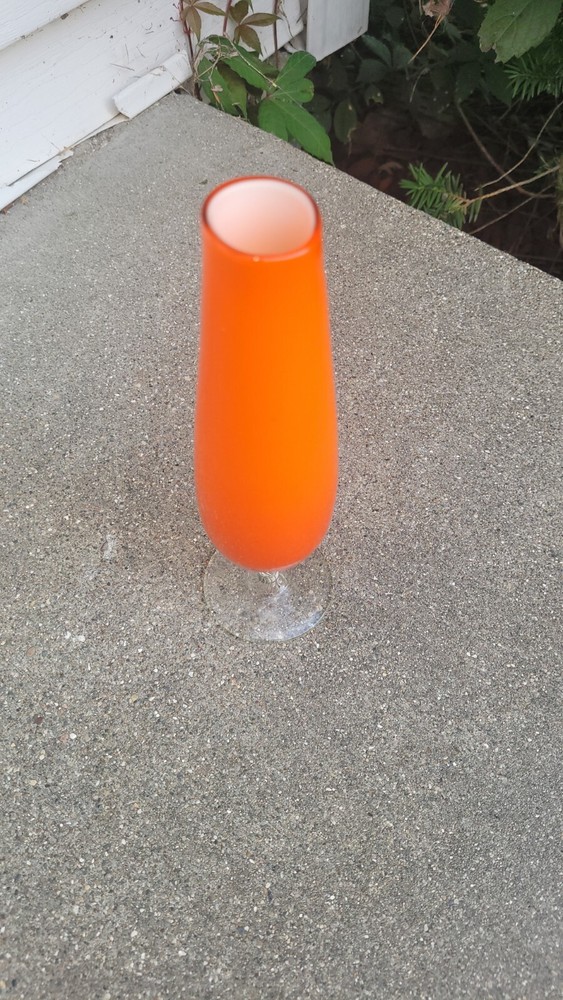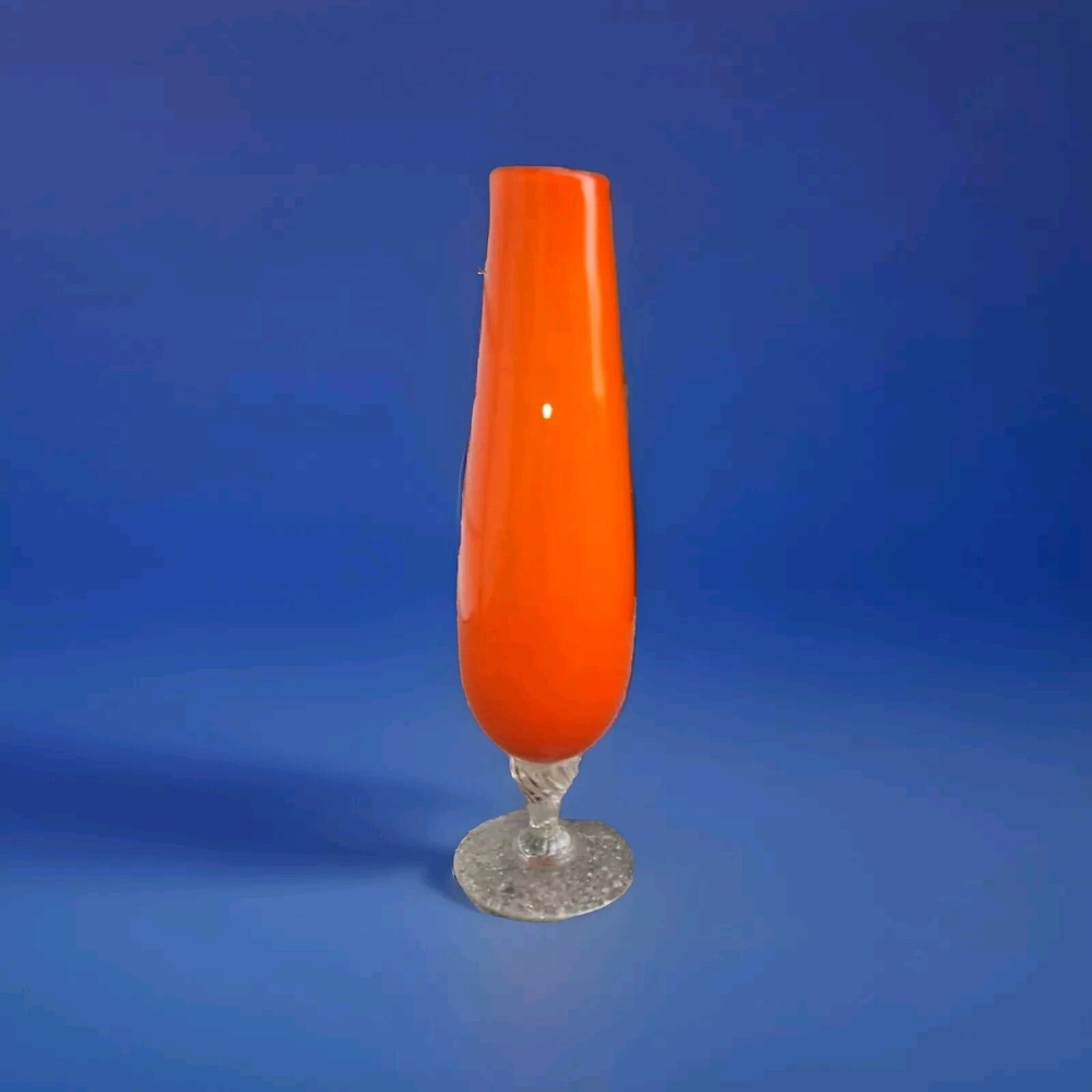 This vintage mid-20th century vase is a stunning piece of art glass that will add a pop of color to any room. The vibrant orange and white stripes create a bold and unique look that is sure to catch the eye. Measuring 8 inches in height, this vase is perfect for displaying flowers or standing alone as a decorative piece. The glass material is high-quality and durable, ensuring that this vase will last for years to come. With its brand name "White" and production style "Art Glass", this vase is a must-have for any collector. Its vintage status adds to its charm and makes it a one-of-a-kind addition to any home decor. Whether you're a fan of mid-20th century art glass or simply looking for a statement piece, this vase is sure to impress.