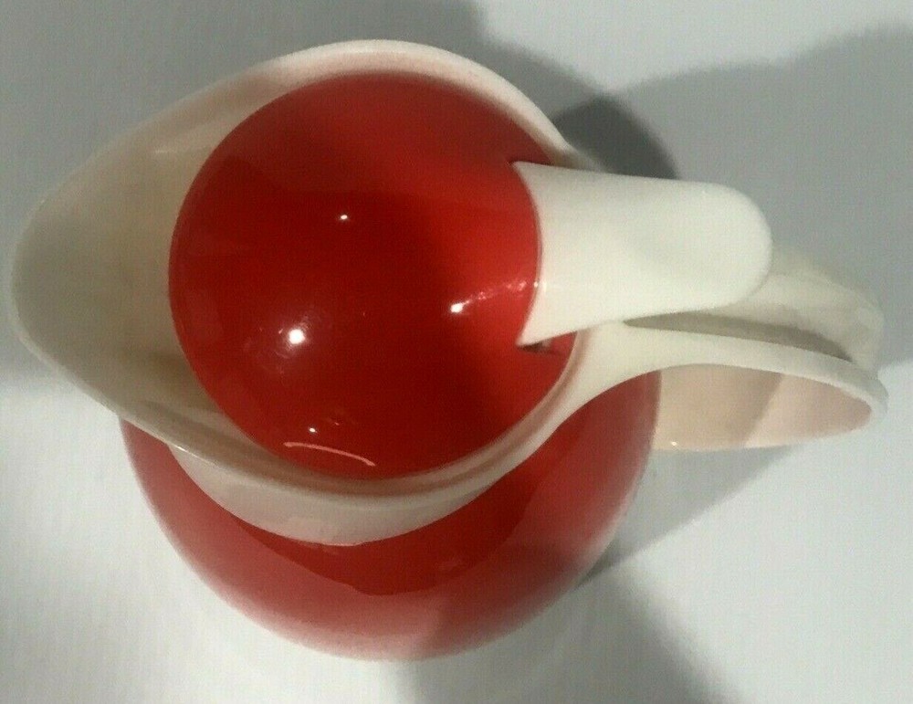Great Mid-Century Modern Styling Orange and White Caraffe Thermal glass interior Excellent condition Perfect for your vintage or modern kitchen Measures approx 10" high, 17" around at widest part 1 Qu...