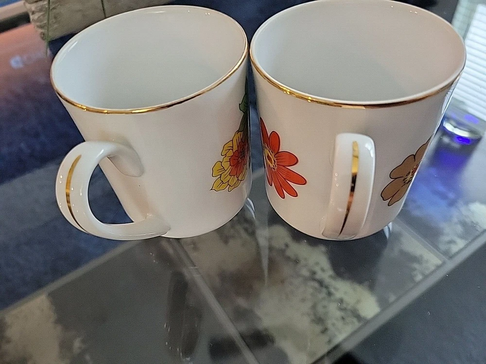 Absolutely love these mugs! The vibrant colors and retro floral design are stunning, and the gold trim adds such a classy touch. They're the perfect size for my morning coffee and arrived in flawless condition. A beautiful and cheerful addition to my collection!