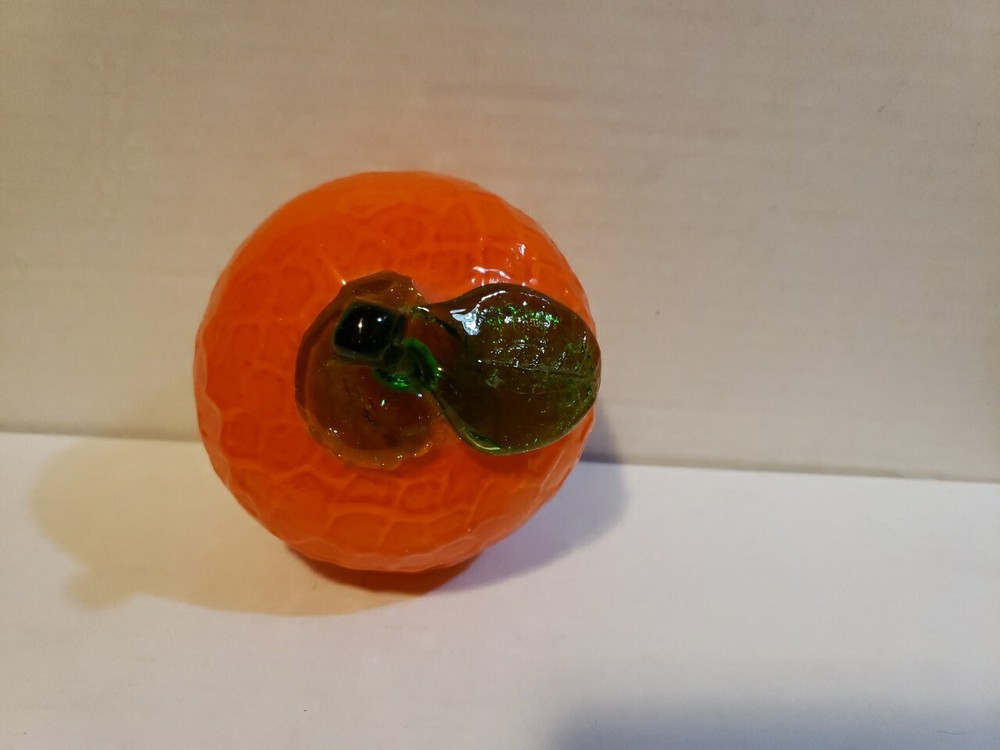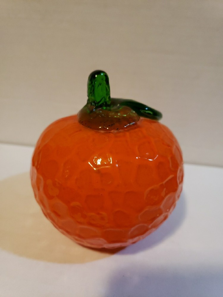 Vintage Murano Style Glass Orange Fruit Art Glass Green Stem Hand Blown EUC 3.5" Thanks for looking!