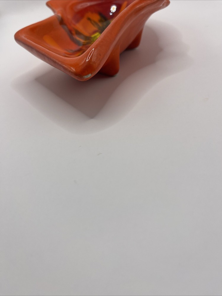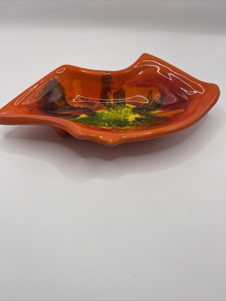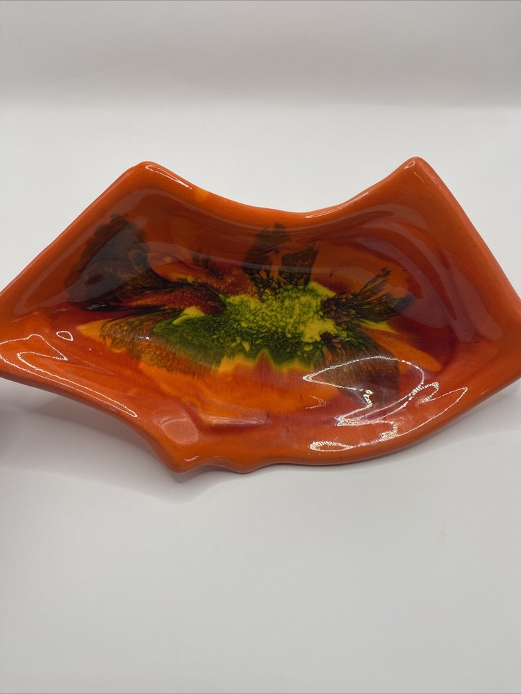 This tray is even more stunning in person! The vibrant drips are so retro-cool, and it's incredibly sturdy. That tiny chip is barely noticeable. An absolute showstopper for entertaining!