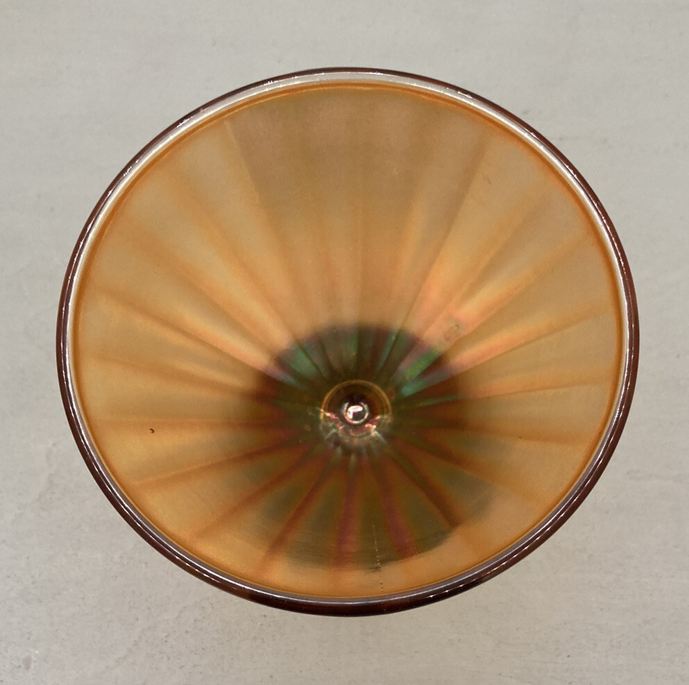 Vintage Orange Black Carnival Glass Bowl Vase Mid Century Modern. Beautiful. No chips or cracks. 4 3/4” tall. 5 1/4” diameter across rim. Base is 3 3/8”.