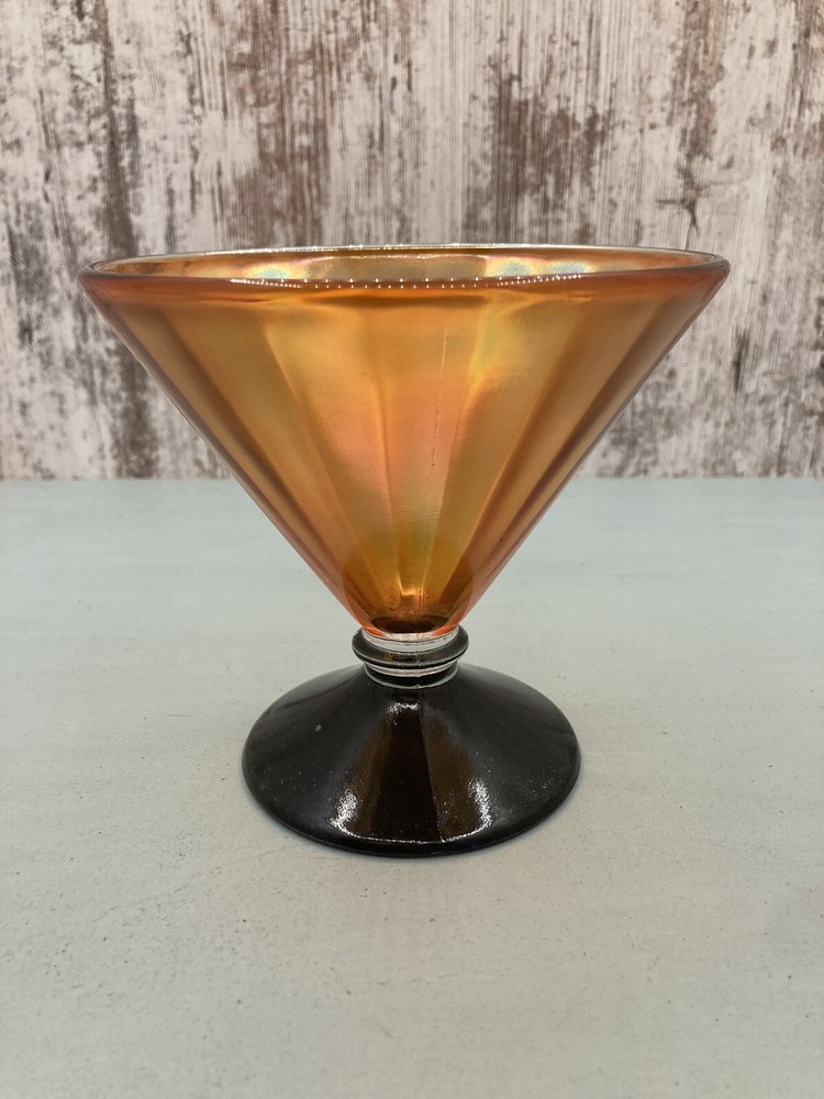 Vintage Orange Black Carnival Glass Bowl Vase Mid Century Modern. Beautiful. No chips or cracks. 4 3/4” tall. 5 1/4” diameter across rim. Base is 3 3/8”....