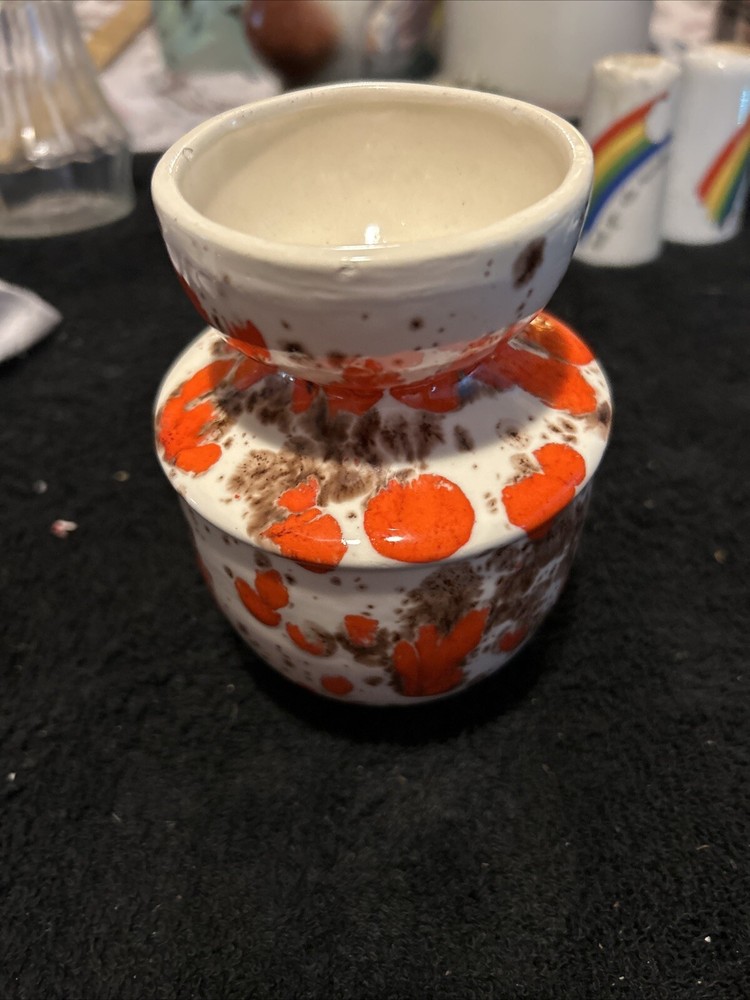 Vintage Orange Splatterware Mid Century Glazed Pottery. Condition is Used. Shipped with USPS Ground Advantage.