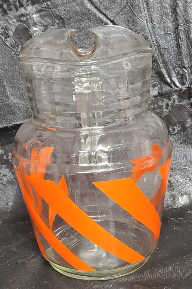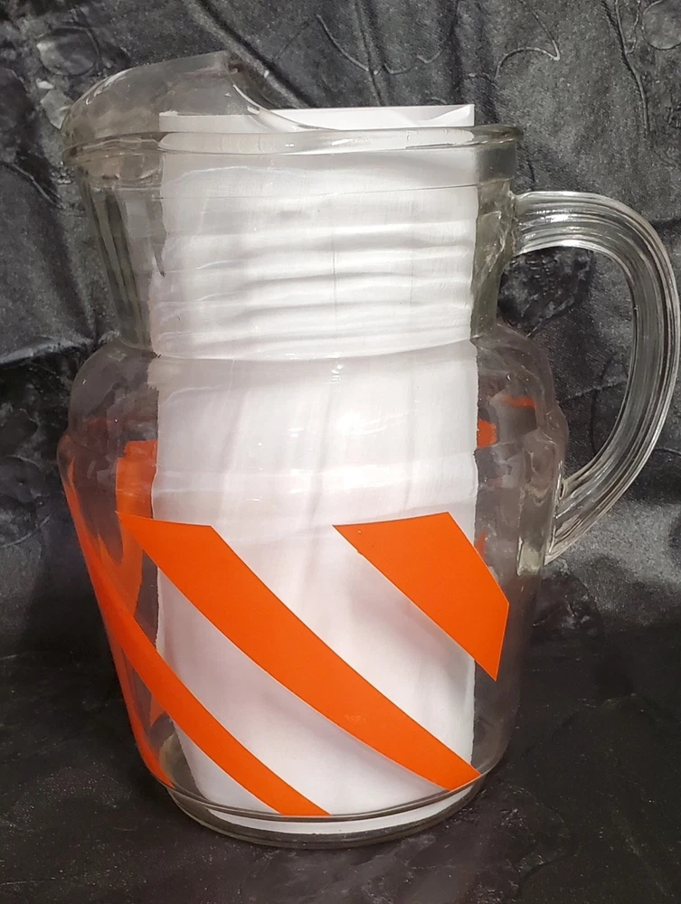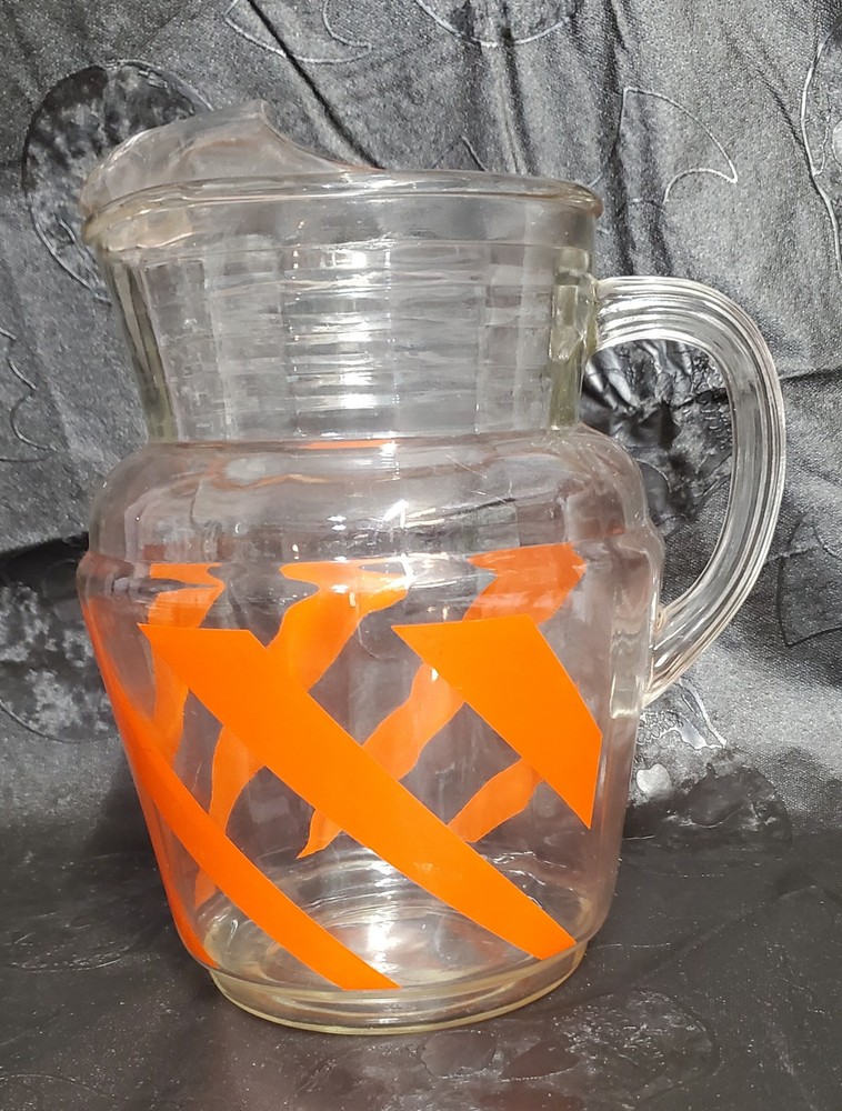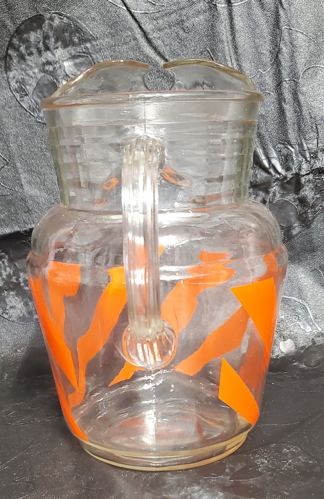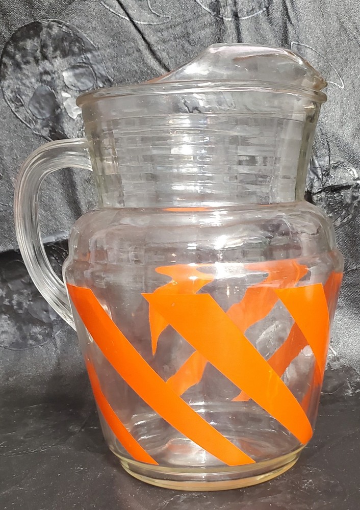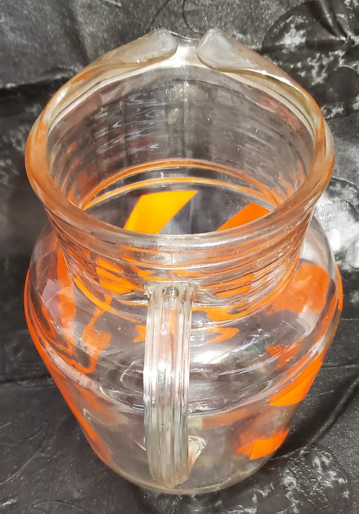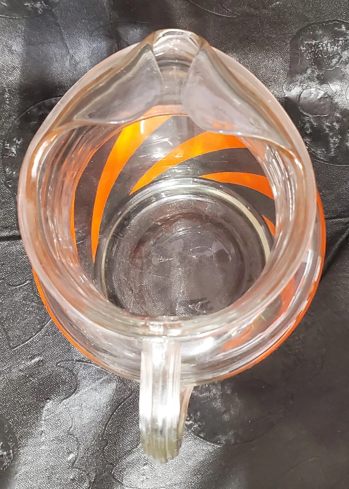 Vintage Mid Century MCM Orange Swirl Glass Pitcher